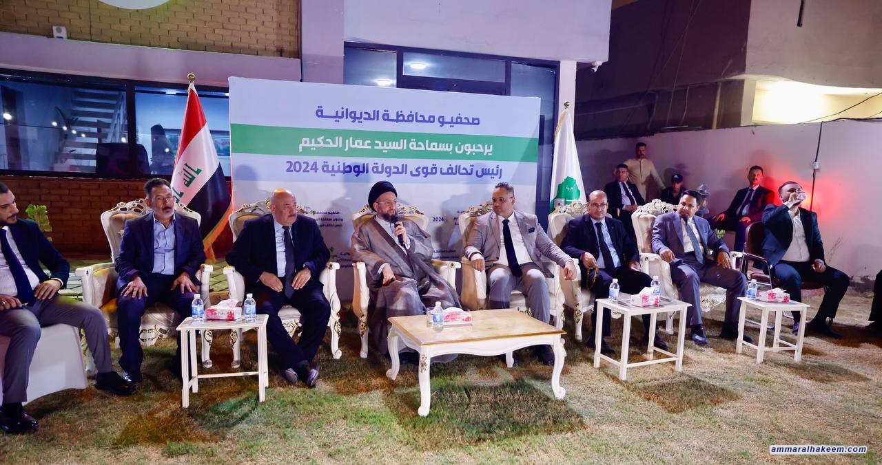 في إطار زيارته لمحافظة الديوانية ، التقى السيد عمار الحكيم رئيس تيار الحكمة الوطني عددا من صحفيي المحافظة في مقر فرع نقابة الصحفيين العراقيين في الديوانية مشيرا إلى الواقع السياسي في العراق وواقع الديوانية والفرص التي تنتظرها، حيث مبينا أن اختلاف وجهات النظر في الرؤى السياسية حالة طبيعية مع ضرورة إيجاد مسارات وآليات تحسم نقاط الاختلاف للمضي قدما داعيا إلى ضرورة النظر للواقع الاجتماعي وعودة الوئام المجتمعي.