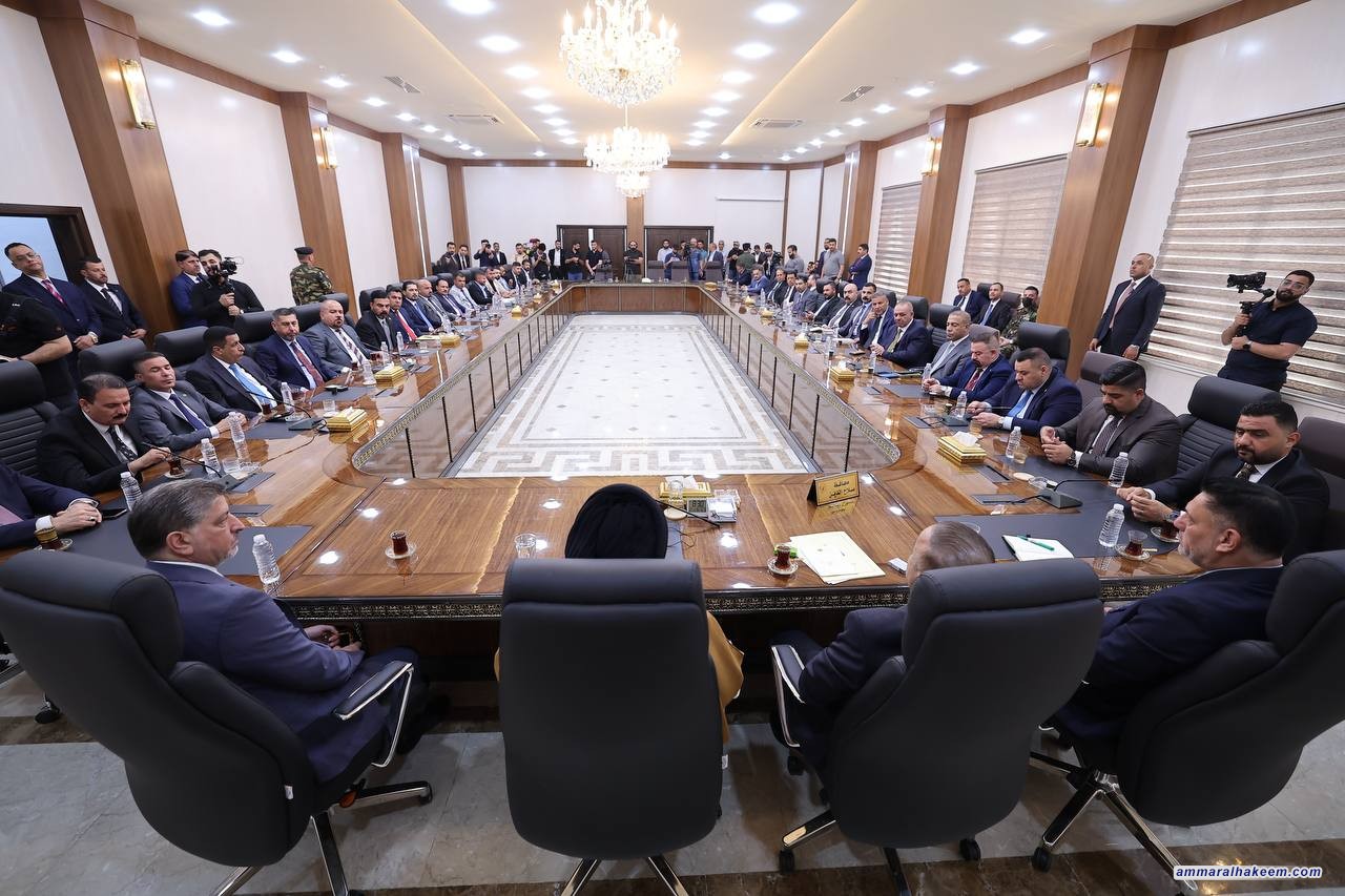 وتطرق السيد الحكيم إلى الاستقرار الأمني الذي تحقق في المحافظة، مؤكداً على ضرورة التمسك به والعمل على إنهاء أزمة النزوح وإعادة النازحين إلى مناطقهم. وأكد أنه يجب محاسبة من ارتكبوا الأخطاء، ولكن دون أن يتم تحميل المسؤولية على مكون أو عشيرة كاملة، داعياً إلى تسوية الإشكاليات الاجتماعية برؤية عادلة.