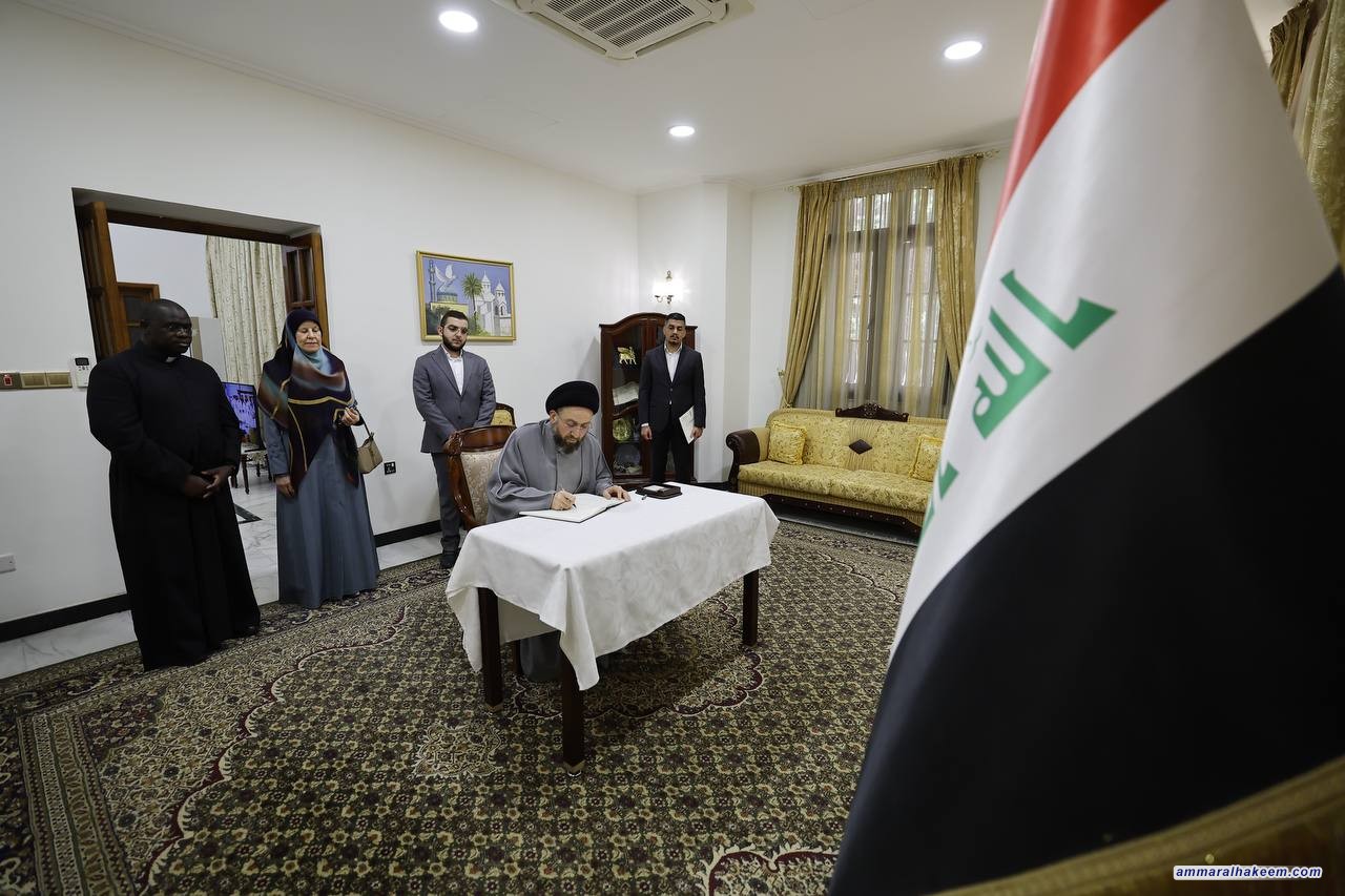 واستذكر السيد الحكيم زيارة قداسة البابا الراحل إلى العراق، والتي استمرت لأربعة أيام وشكّلت محطة بارزة في تاريخ التعايش السلمي بين المكونات الدينية والاجتماعية في البلاد، لا سيما لقاؤه التاريخي بسماحة المرجع الأعلى الإمام السيد علي السيستاني (دام ظله الوارف)، والذي عكس عمق القيم المشتركة بين الأديان.