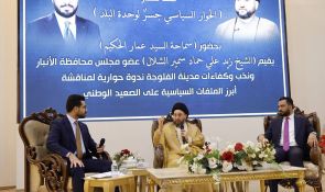 شارك السيد الحكيم رئيس تحالف قوى الدولة الوطنية، في الندوة الحوارية التي أقامها عضو مجلس محافظة الأنبار، الشيخ زيد علي حماد الشلال، في مدينة الفلوجة، بحضور جمع من نخب وشباب المدينة. وخلال اللقاء، استعرض السيد الحكيم عدداً من القضايا الوطنية والإقليمية، مؤكداً على ضرورة توسيع مساحة الحوار الوطني وتعزيز الوعي السياسي لدى الشباب.
