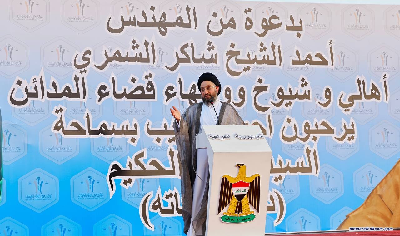 وأكد الحكيم أن المدائن تمثل رسالة حية للتعايش السلمي في العراق، وقد واجهت محاولات الأعداء لجعلها ساحة للاقتتال الداخلي، إلا أن وعي العشائر وسلوكها الوطني أفشل تلك المحاولات، مثمنًا دورهم في الحفاظ على النسيج الوطني، ومشدّدًا على أهمية تحسين الواقع الخدمي في القضاء.