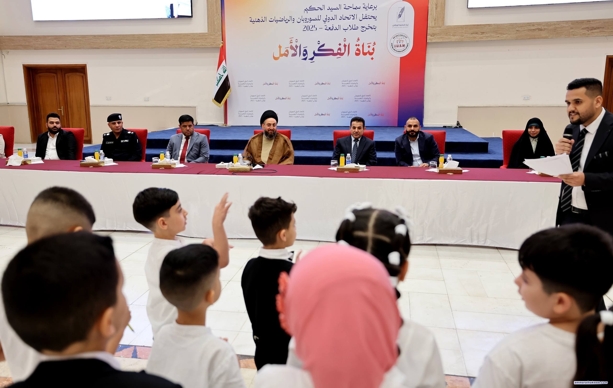 السيد الحكيم يلتقي نخبة من طلبة الاتحاد الدولي للسوروبان ويشيد بتميزهم في الرياضيات الذهنية