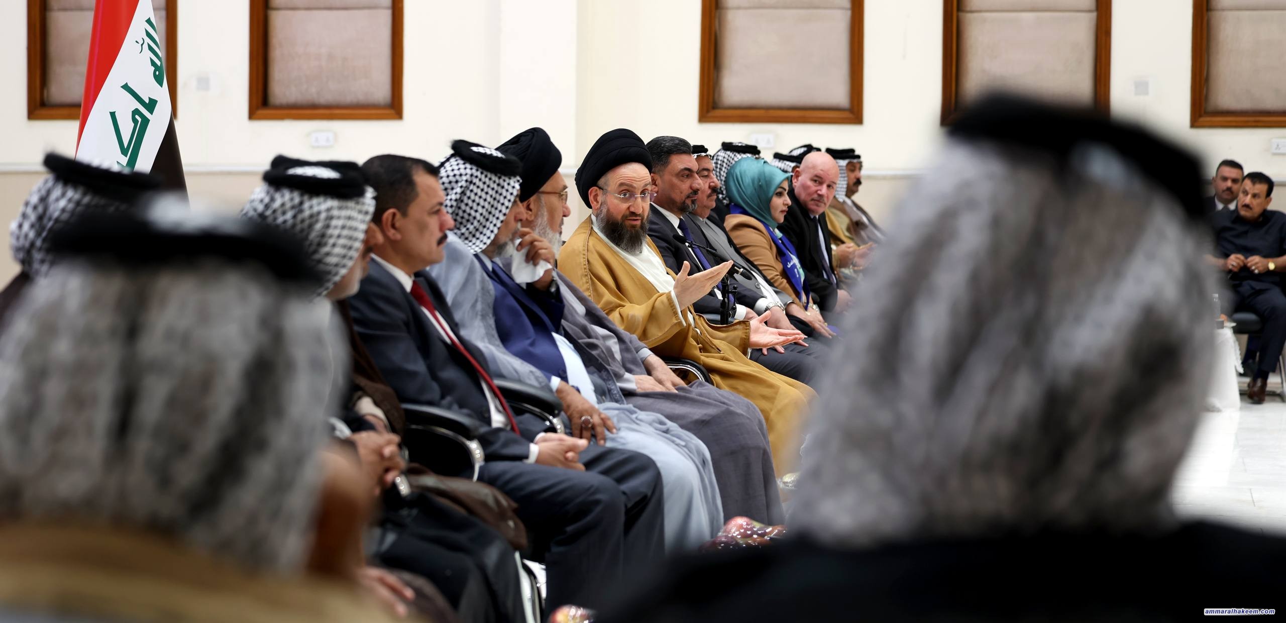 السيد الحكيم خلال لقائه وجهاء وشيوخ الديوانية وآل بدير: تجاوزنا مرحلة الاشتباك السياسي والتحدي القادم هو الخدمات والعدالة في توزيع الثروات