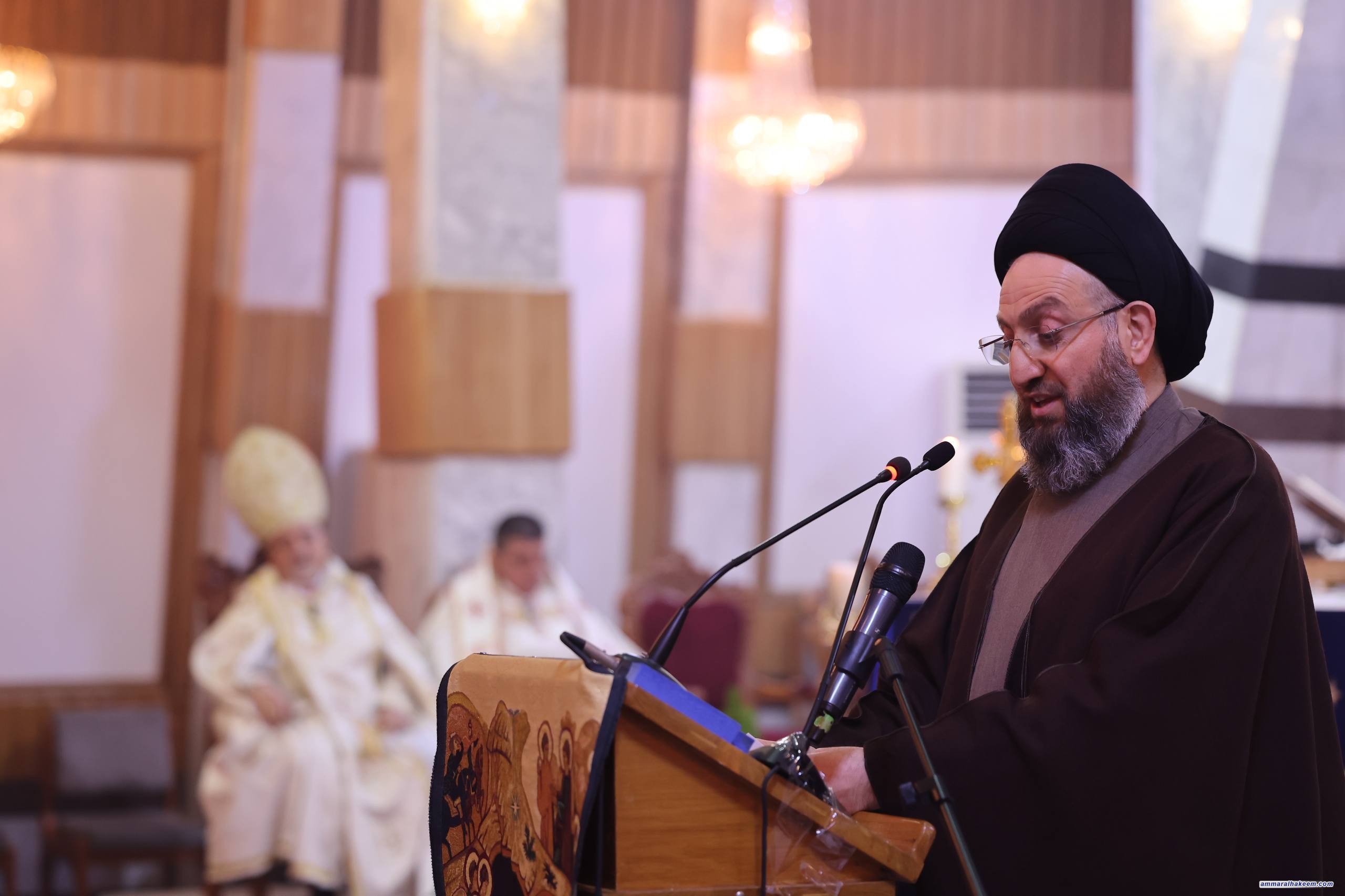 من كنيسة سيدة النجاة للسريان الكاثوليك في بغداد، بارك سماحة السيد الحكيم، رئيس تحالف قوى الدولة الوطنية، للحاضرين وللمسيحيين في العراق والعالم أعياد الميلاد المجيد، مبينا أن السيد المسيح (عليه وعلى نبينا وآله السلام) رمز السلام، كما أن رسولنا الكريم رمز الرحمة، مؤكدا الحاجة إلى ترسيخ قيم الرحمة والسلام في بناء مجتمع يرتقي بأبنائه ويحافظ على تنوعه.