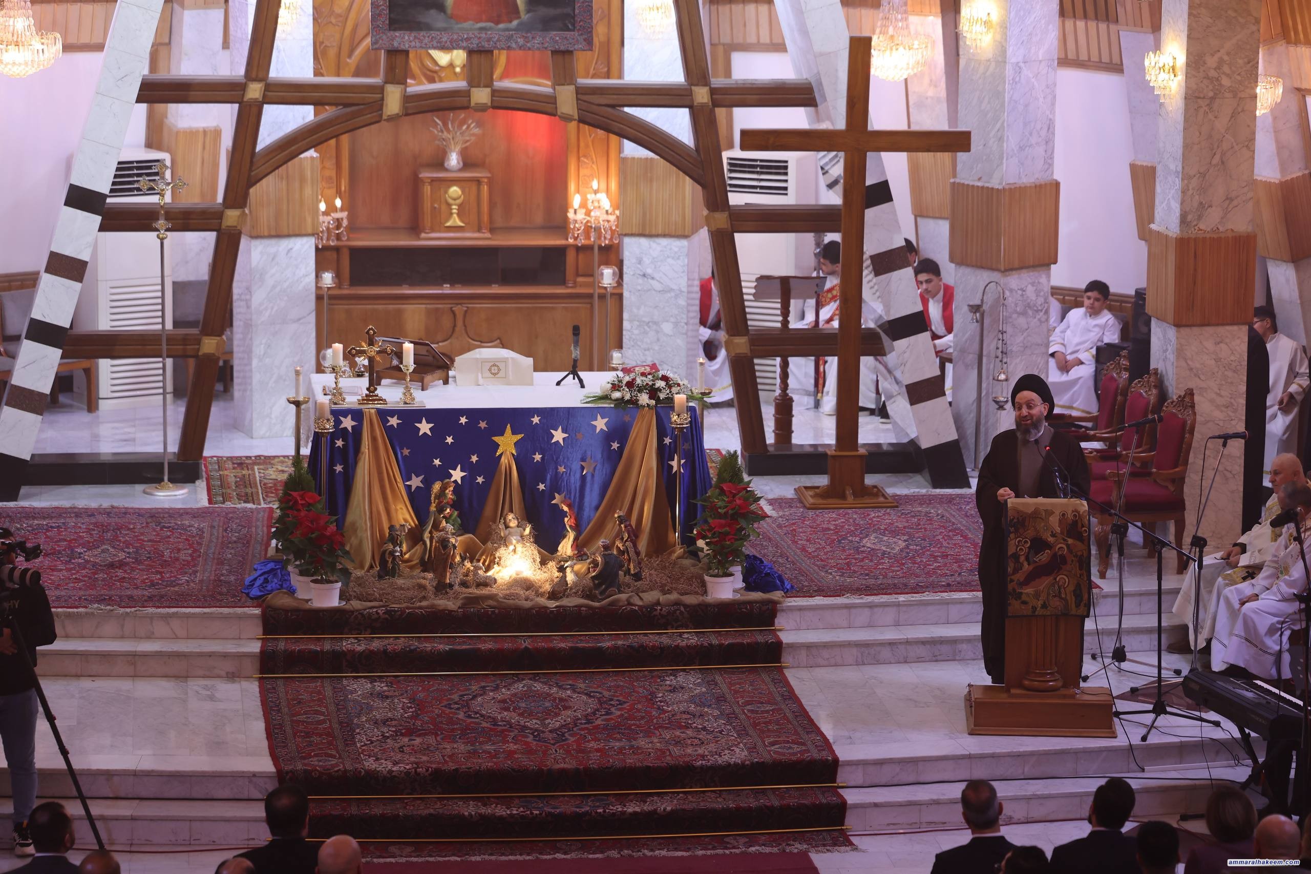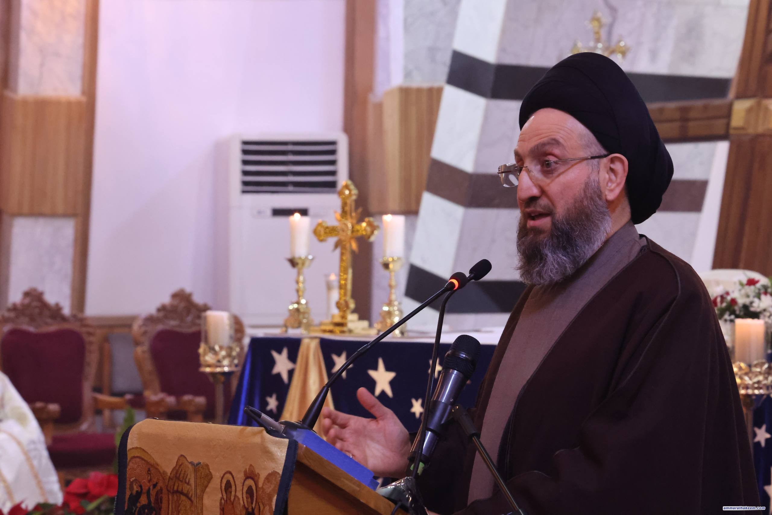 السيد الحكيم من كنيسة سيدة النجاة يبارك أعياد الميلاد ويدعو إلى ترسيخ قيم السلام والتعايش
