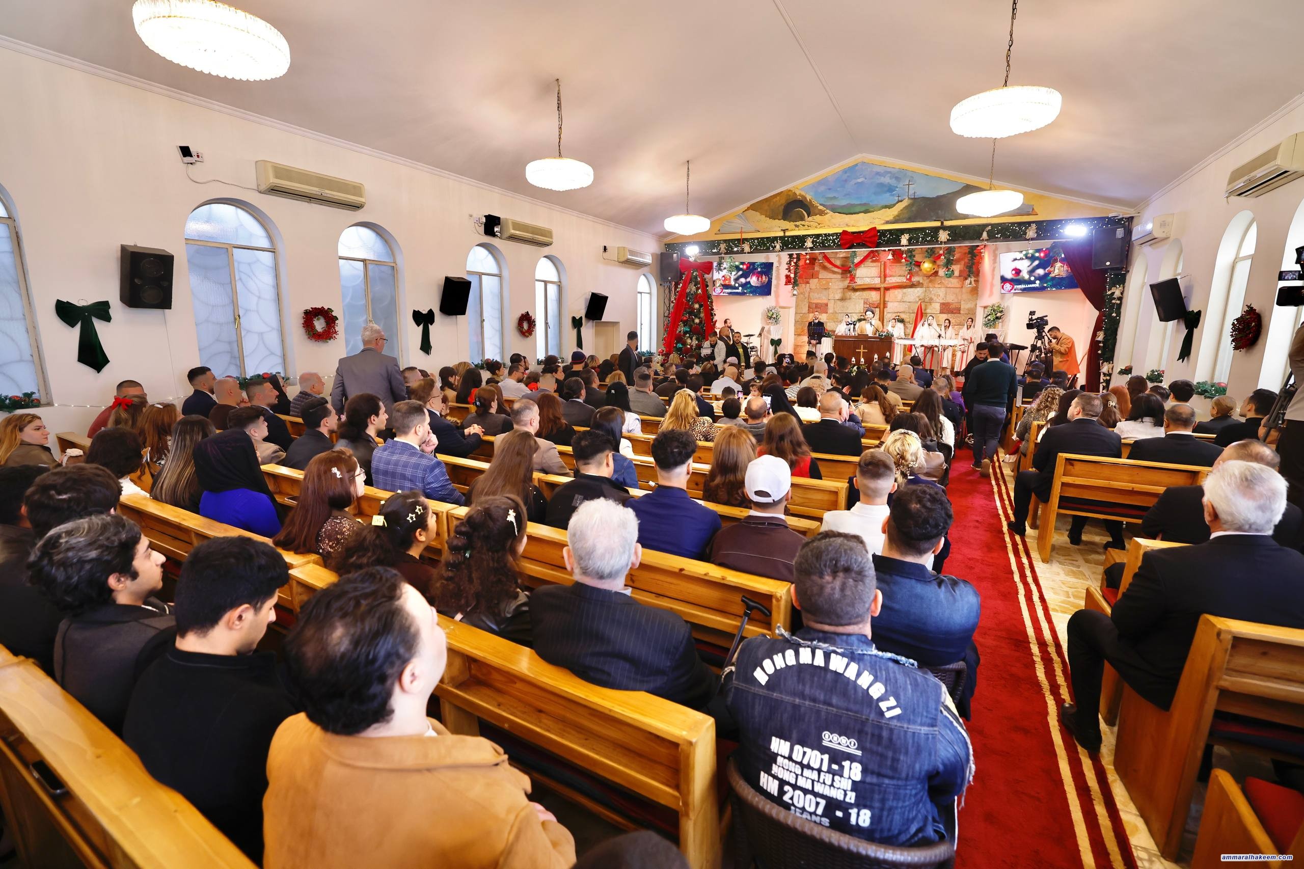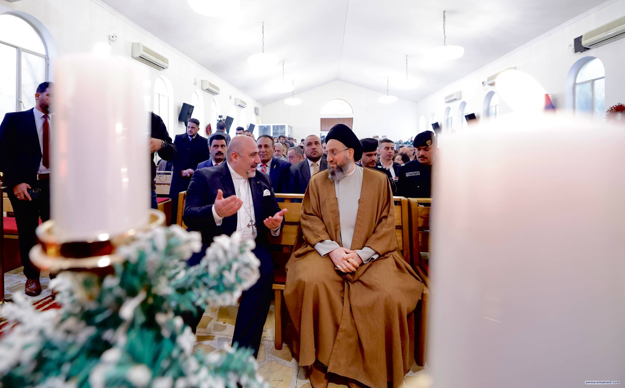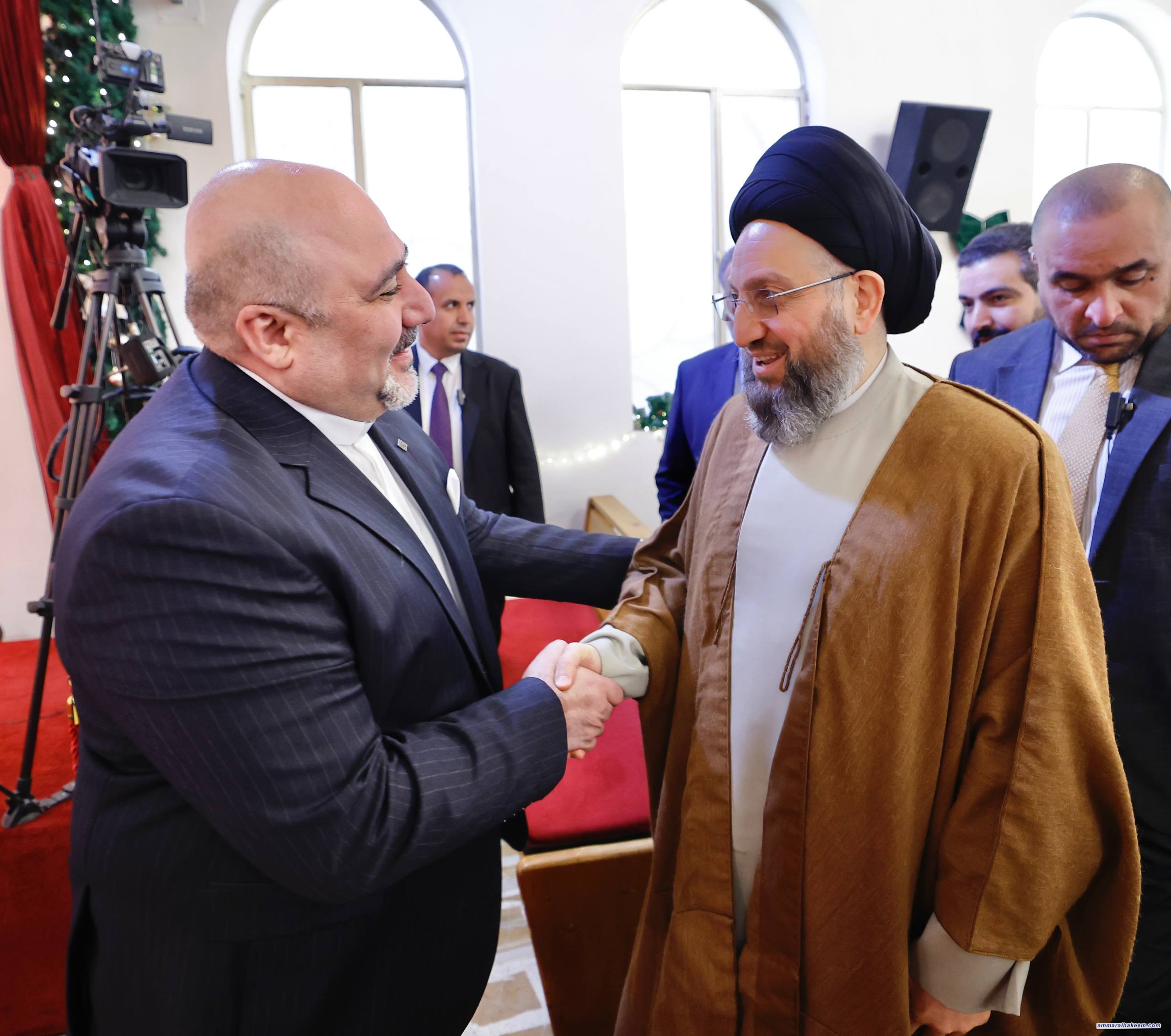 من كنيسة الاتحاد المسيحي الإنجيلية الوطنية، شارك سماحة السيد الحكيم، رئيس تحالف قوى الدولة الوطنية، الإخوةَ المسيحيين احتفالاتِهم بعيد الميلاد المجيد، حيث بارك لهم هذه المناسبة الطيبة، معربًا عن اعتزازه بالتنوّع الديني والثقافي الذي يميّز المجتمع العراقي.