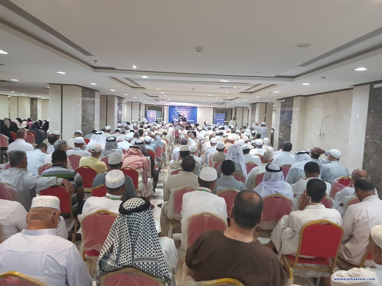 سماحته في كلمة له قرأت نيابة عنه في مؤتمر العراق الثامن والعشرين في الديار المقدسة بمناسبة موسم الحج الخميس ١٦/٨/٢٠١٨. استذكر الدور الذي لعبه شهيد المحراب اية الله العظمى السيد محمد باقر الحكيم قدس سره والظروف العصيبة التي كان ينعقد بها هذا المؤتمر