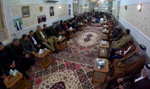 سماحته تداول مع شيوخ ووجهاء عشيرة البوحوميد تطورات المشهد السياسي وفرص نجاح الحكومة الحالية وضرورة دعمها والصبر عليها لتحقيق رؤيتها وبرنامجها، مشيرا إلى طبيعة رئيس الوزراء وتدرجه الوظيفي الذي أفاده في التعرف على المشاكل ما جعله شخصا إجرائيا وإداريا في الوقت  نفسه مطالبا بالتصدي لمشاريع التهوين وشيطنة كل شيء لإشاعة أجواء الإحباط والسلبية .