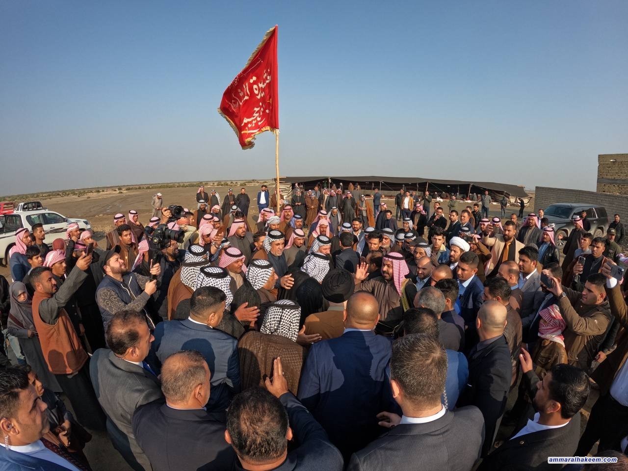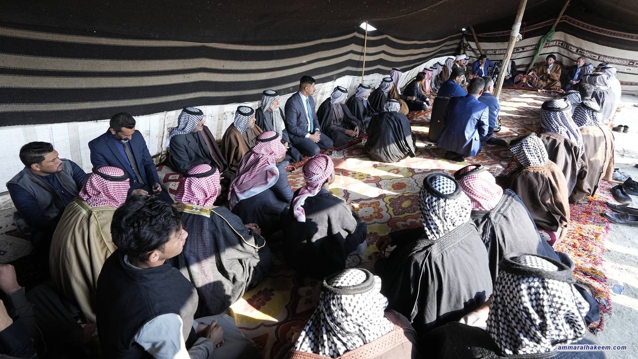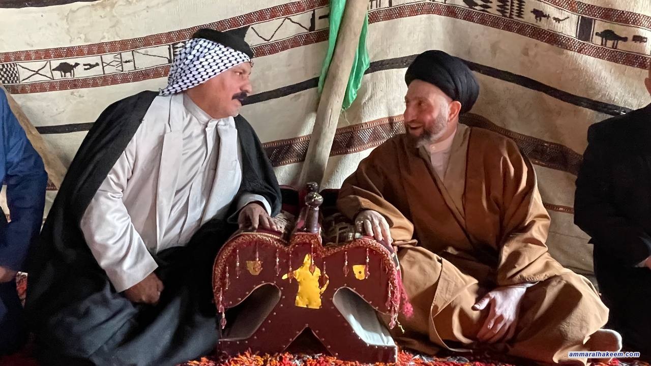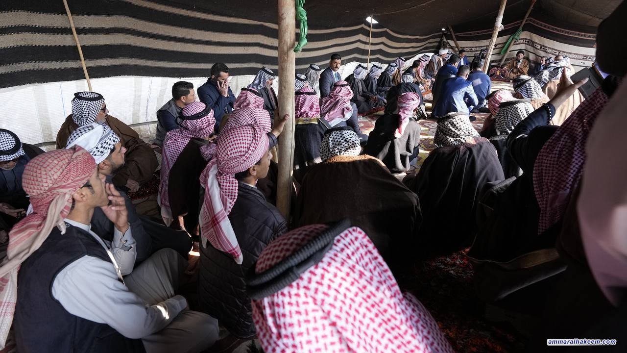بحضور محافظ المثنى الأستاذ أحمد منفي، وفي مضيف الشيخ غصاب جري حسين المشعلاوي شيخ عشيرة المشاعلة بني حچيم 22/12/2022، حيث استذكر السيد عمار الحكيم رئيس تيار الحكمة الوطني التاريخ المشترك الذي جمعه مع أبناء هذه العشيرة الكريمة والمواقف المشتركة في محطات عظيمة من تاريخ العراق في مقارعة الدكتاتورية ومواجهة الإرهاب مبينا أن العراق دفع ضريبة لنظامه السياسي والديمقراطي والحرية التي تمتع بها الشعب العراقي بعد سقوط الديكتاتورية.
