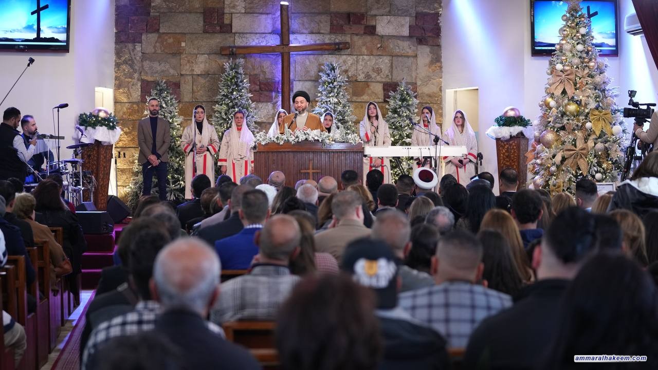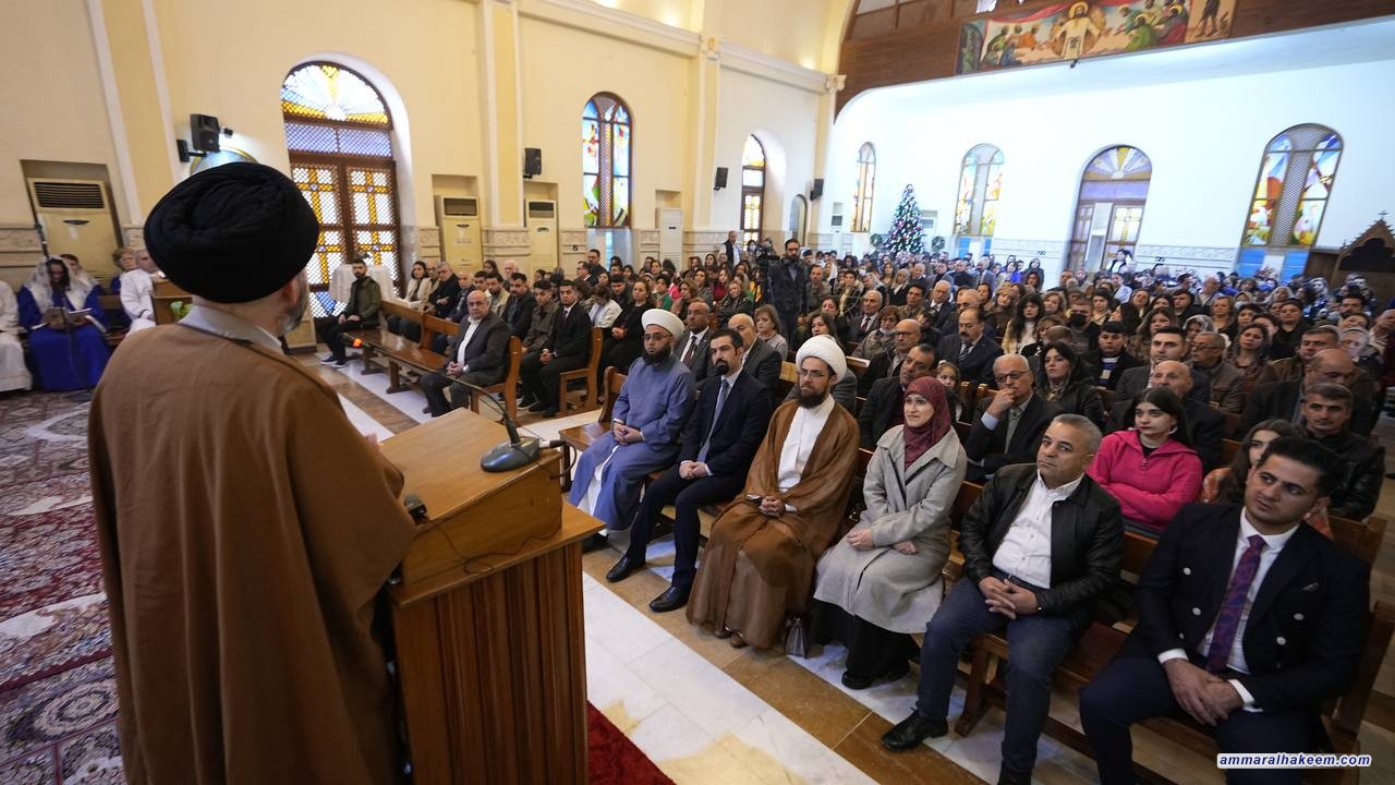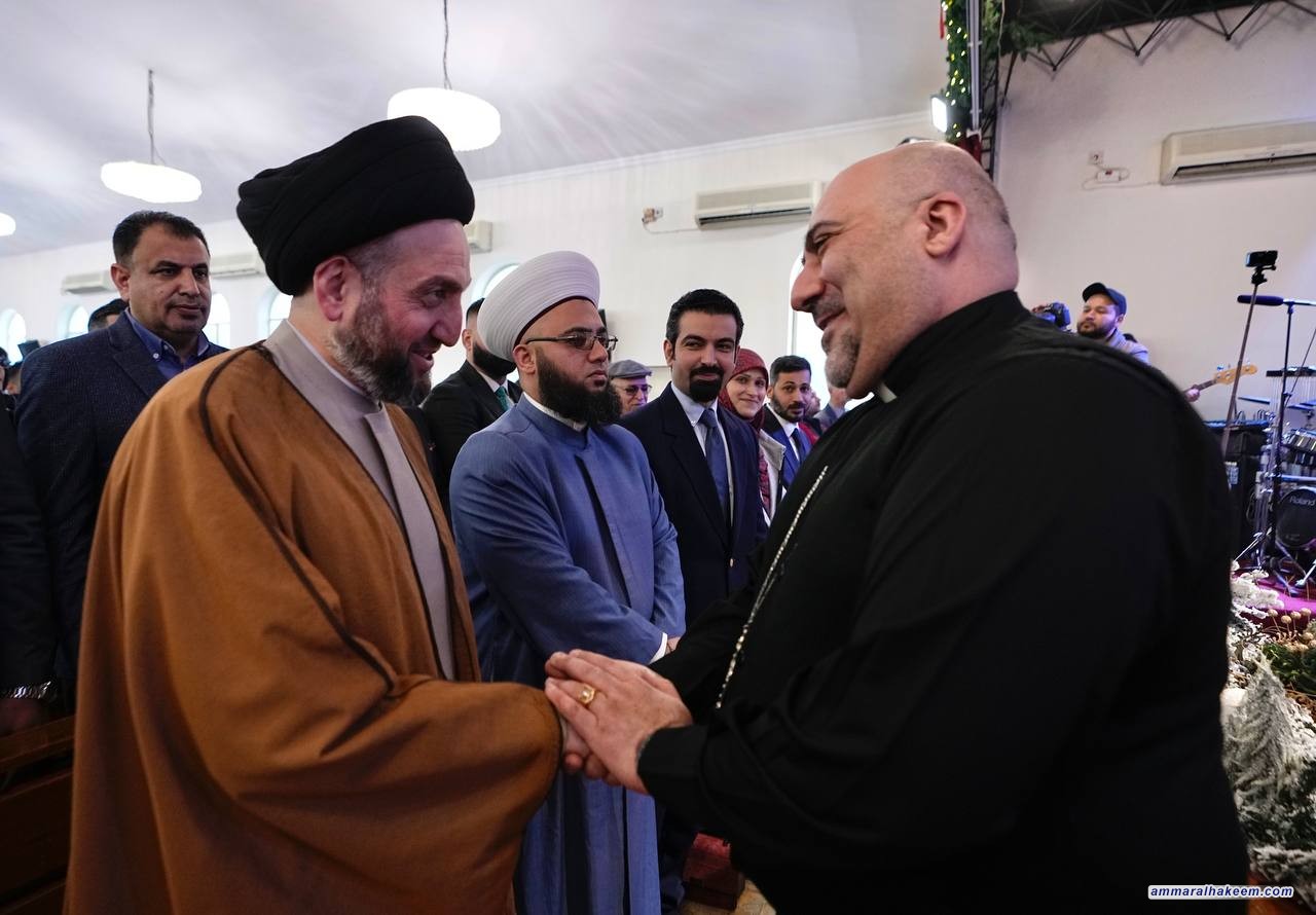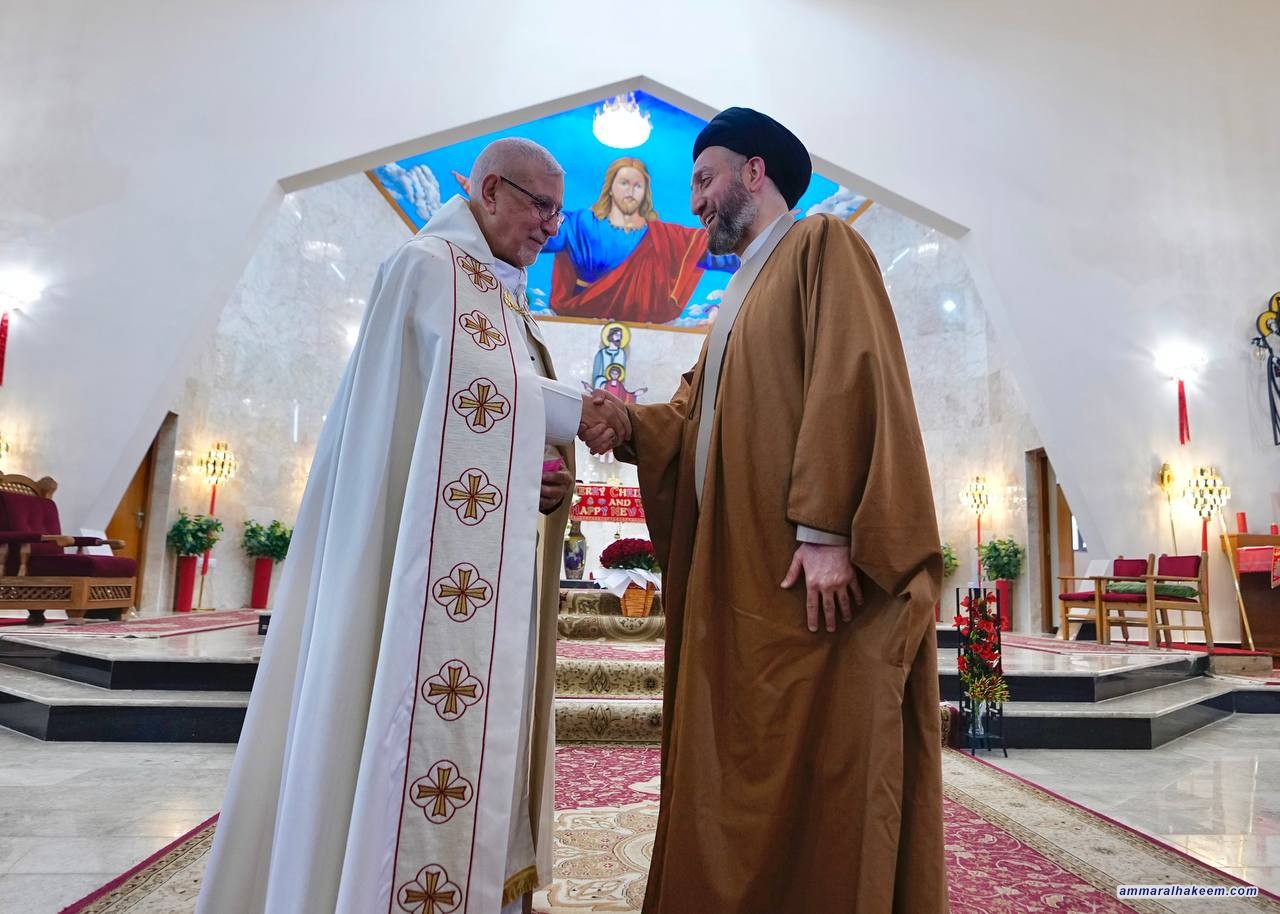 في زيارته لعدد من كنائس العاصمة بغداد ( كنيسة ماربطرس بولص وكنيسة ماركوركيس للكلدان ، وكنيسة الإتحاد الإنجيلية، وكنيسة ماريوسف للسريان وكاتدرائية سيدة الزهور، والكنيسة المعمدانية ) 25/12/2022، جدد السيد عمار الحكيم رئيس تيار الحكمة الوطني التبريك للاخوة المسيحيين بذكرى مولد السيد المسيح ( عليه وعلى نبينا و اله أفضل الصلاة والسلام) متمنيا لهم عاما سعيدا وحياة عامرة بالفرح والمسرات ، مؤكدا على جملة من الأمور منها إن ذكرى ميلاد السيد المسيح فرصة للإحتفال بالمناسبة والإحتفاء والإقتداء والسير على النهج القويم للسيد المسيح وأخلاقه السامية وسلوكه النير مبينا أهمية التلازم بين رسالة السلام للسيد المسيح (عليه السلام) ورسالة نبينا الأكرم محمد (صلى الله عليه واله وسلم) المتمثلة بالرحمة وما أحوجنا للسلام والمحبة والرحمة.