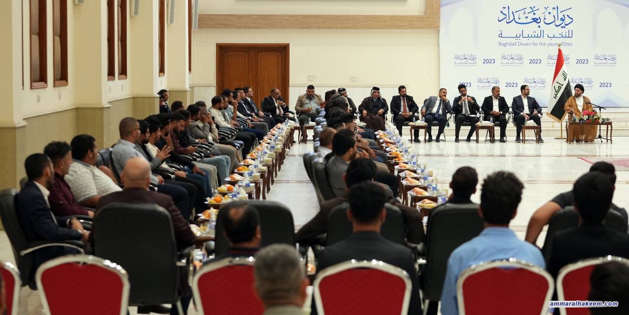 في ديوان بغداد للنخب الشبابية 3/6/2023، اكد السيد عمار الحكيم رئيس تيار الحكمة الوطني إن الشباب طاقة مهمة إذا أحسن استخدامها وأيضا تحدي خطير إن لم نحسن إدارته مبينا العراق لايُقارن إلا بنفسه بحكم ما عاشه من ظروف وأزمات وانتقال غير سلس من نظام دكتاتوري شمولي إلى نظام ديمقراطي تعددي، وهذا الانتقال بين هذين النموذجين من النظامين له ضريبة على المستوى الداخلي والخارجي.