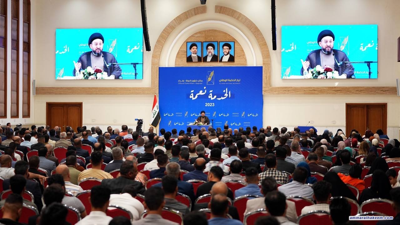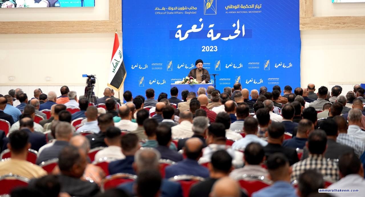 سماحته دعا للاعتزاز بمشروع الحكمة الوطني مشروع الاعتدال والوسطية، مؤكدا أن الحكمة تنفتح على الجميع ولديها مقبولية من الجميع.