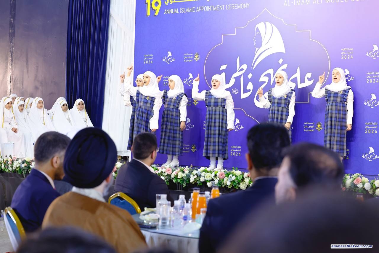خلال حفل التكليف الشرعي لجمع من بناتنا العزيزات في مدارس الإمام علي "عليه السلام" في النجف الأشرف24/4/2024، شكر السيد عمار الحكيم رئيس تيار الحكمة الوطني إدارة وملاكات هذه المدارس لمواظبتهم على إقامة هذا الاحتفال السنوي على مدار ١٩ عاما، مشددا على حسن التنشئة، مبينا أن التكليف يعني توجيه الخطاب والتكليف تشريف وتكريم ومنزلة حين يستحق العبد أن يوجه له الخطاب من الله تعالى ، وأن التكليف لا يمكن أن يكون إلا بالوسع فلا يكلف الله نفسا إلا وسعها كما أنه يستبطن التشريف و تحقق الإرادة على الفعل أوالترك من ناحية أخرى.