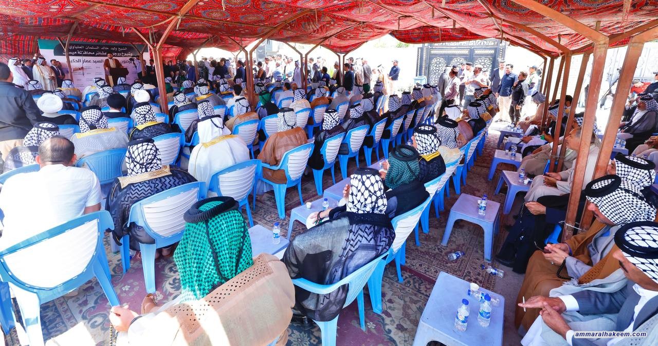 من ميسان العطاء وفي مضيف الشيخ وليد خالد السلمان العلياوي شيخ عشيرة البو علي التقى السيد عمار الحكيم جمعا كريما من السادة الأجلاء وشيوخ العشائر والوجهاء في محافظة ميسان24/4/2024، مستذكرا مع الحاضرين مرحلة الجهاد في مواجهة الدكتاتورية والانتصار للعراق، مبينا ضرورة استذكار الماضي والانطلاق منه للحاضر والمستقبل.