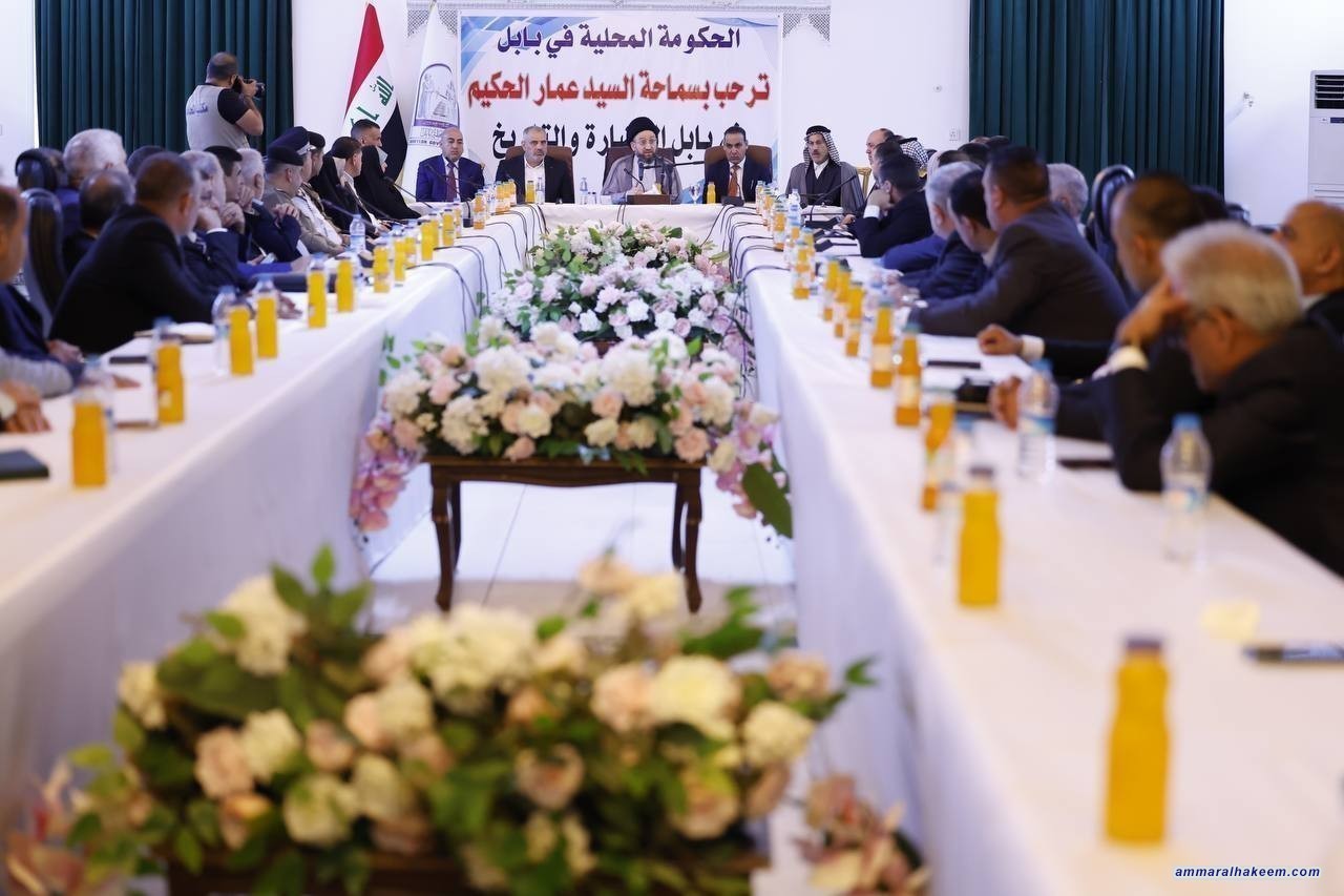 التقى السيد عمار الحكيم رئيس تيار الحكمة الوطني 2/5/2024، محافظ الأستاذ عدنان فيحان ورئيس وأعضاء مجلس المحافظة و اعضاء مجلس النواب من المحافظة ومديري الدوائر الخدمية والقيادات الأمنية فيها، واستعرض مكانة محافظة بابل الحضارية والتاريخية وثقلها السكاني ودورها في تاريخ العراق.