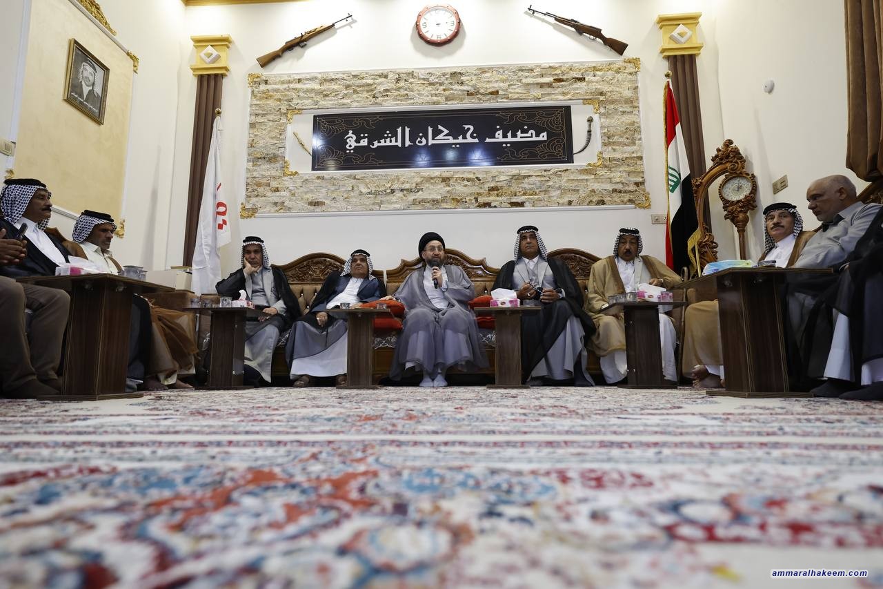 في مضيف الشيخ عادل نعمة الخيگاني، التقى السيد عمار الحكيم رئيس تيار الحكمة الوطني جمعا من شيوخ ووجهاء عشيرة الخيگان الكريمة ووشيوخ ووجهاء ناحية الشوملي، وعاد بالذاكرة إلى المحطات التي جمعتنا بهم، موكدا أن العراق عانى من القراءة المغلوطة تجاهه من المحيط الإقليمي والدولي ودفع ضريبة كبيرة لهذه القراءة وها هو اليوم يقطف ثمار صبر وتضحيات ودماء أبنائه ليتحول ركنا أساسيا في استقرار المنطقة