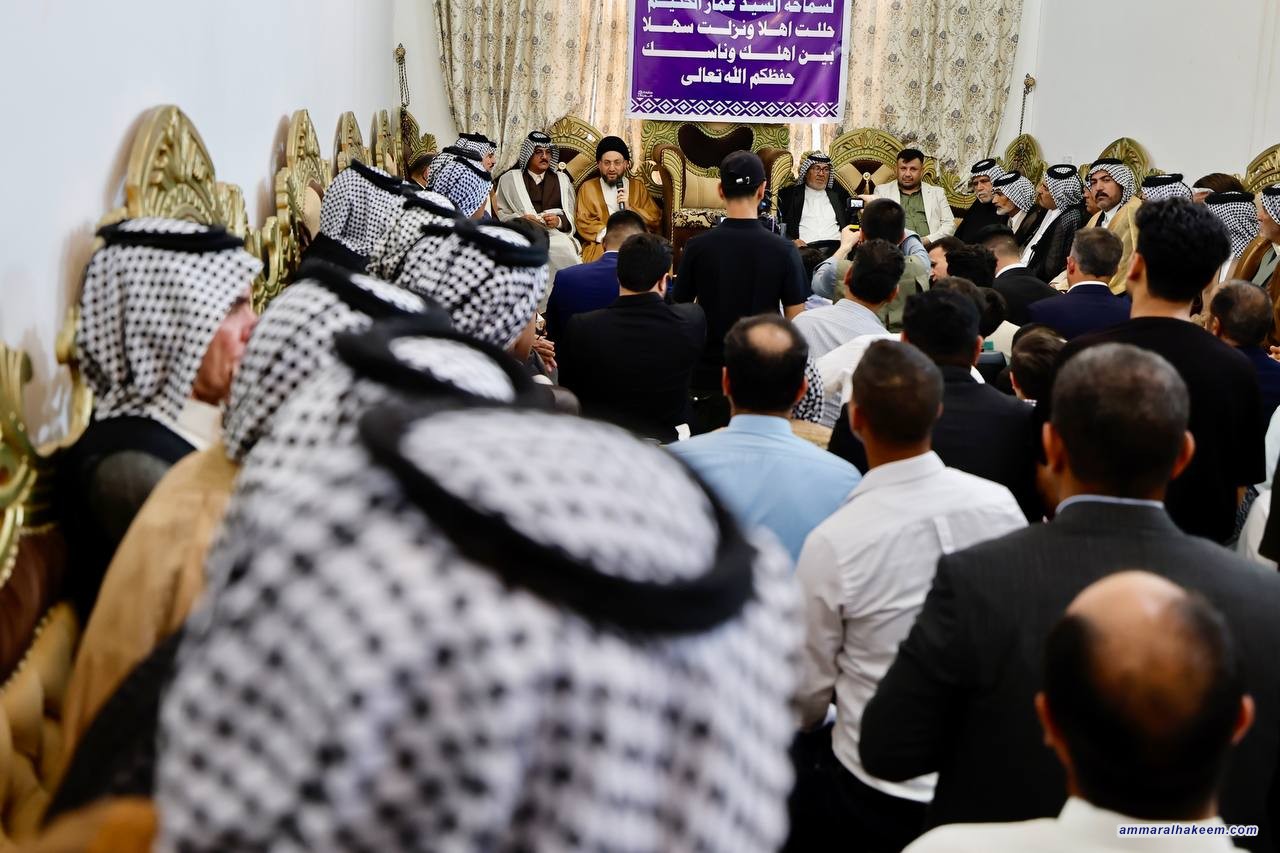 التقى السيد عمار الحكيم رئيس تيار الحكمة الوطني في مضيف السادة الطباطبائيين مضيف جناب السيد حيدر أحمد الطباطبائي جمعا من شيوخ ووجهاء المثنى حيث شدد على أهمية إنصاف المحافظات الأشد فقرا خاصة التي لا تمتلك صندوقا للإعمار وأهمية التعامل معها باستثنائية عند إقرار الموازنات ، مبينا أهمية معالجة الشحة المائية في المثنى وباقي القضايا الخدمية للنواحي والقرى، والاهتمام بالبنى التحتية والمداخل، سماحته اعرب عن ثقته بالحكومة المحلية في إنجاز المشاريع التنموية والخدمية، كما دعا لإشاعة الإيجابية والتفاؤل.