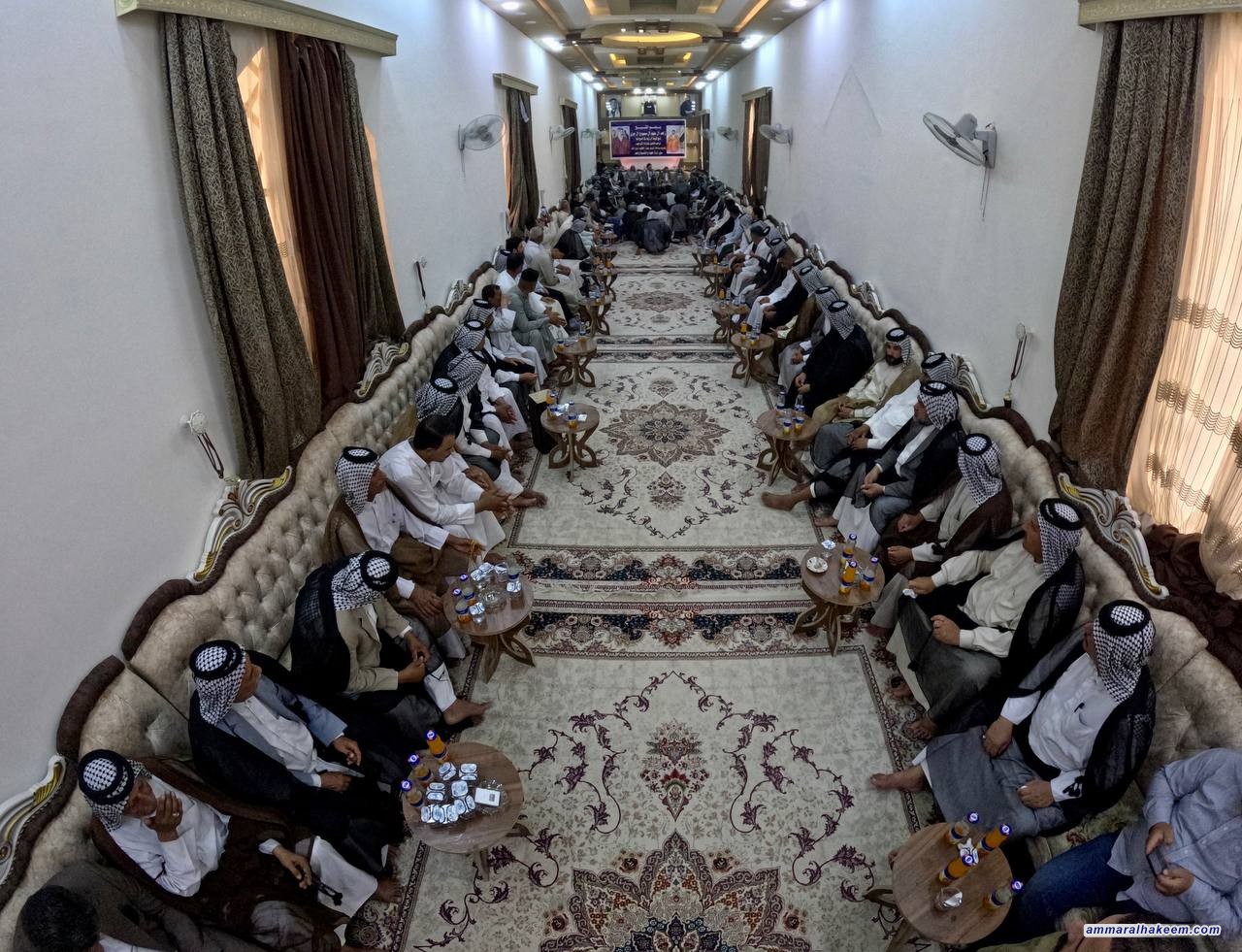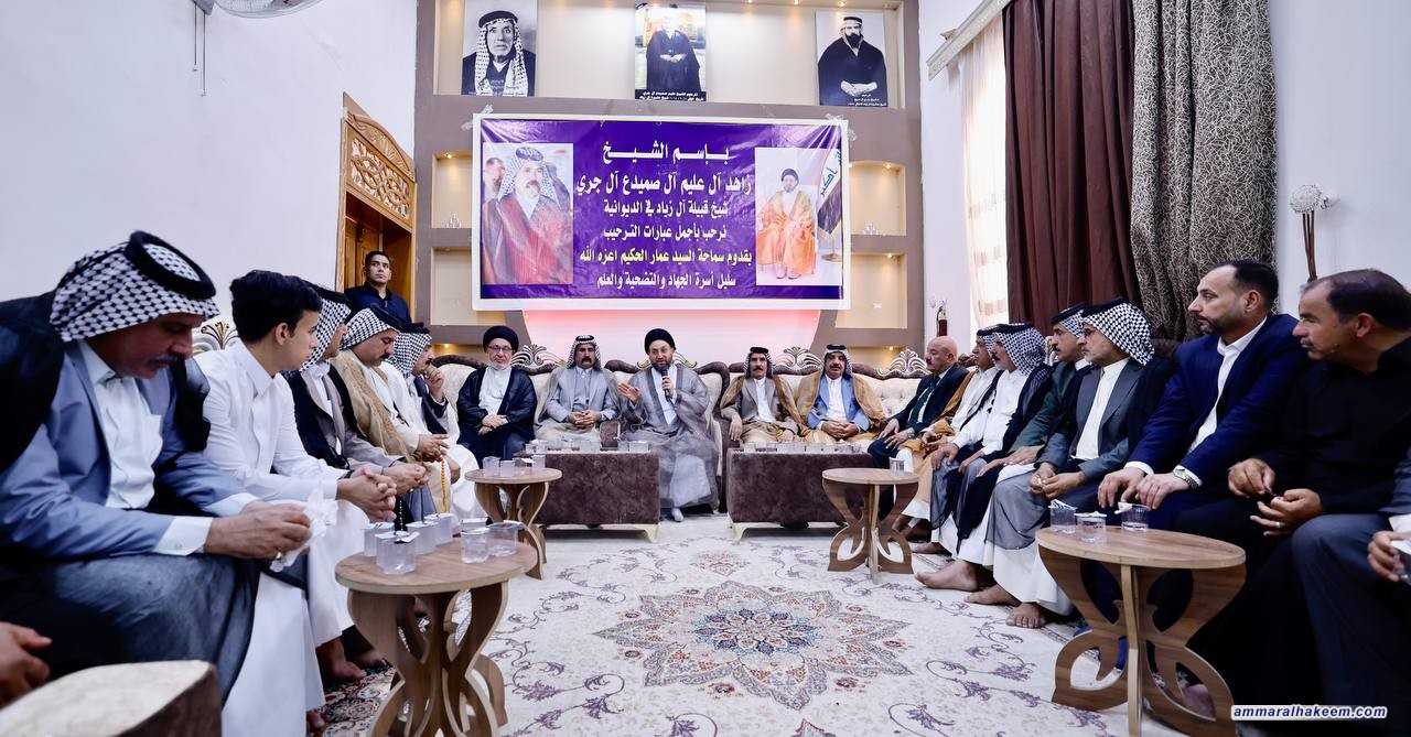 من قضاء غماس في محافظة الديوانية التقى ألسيد عمار الحكيم رئيس تيار الحكمة الوطني مع شيوخ ووجهاء القضاء لاسيما آل زياد الكرام في مضيف الشيخ زاهد آل عليم الزيادي شيخ قبيلة آل زياد في الديوانية وعاد بالذاكرة عند مطالعته الوجوه الكريمة إلى تلك الأيام التي رفع بها العراقيون لواء مواجهة الديكتاتورية ومواجهة الإرهاب وبناء الدولة وتعزيز أسس الاستقرار، وقال إن العراق دفع ضريبة التحول من النظام الدكتاتوري إلى النظام التعددي الديمقراطي، حيث عانى من الإرهاب بدءا من تفجيرات الأمم المتحدة ومن ثم استهداف شهيد المحراب (رضوان الله عليه) في الأول من رجب.