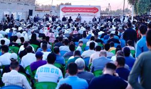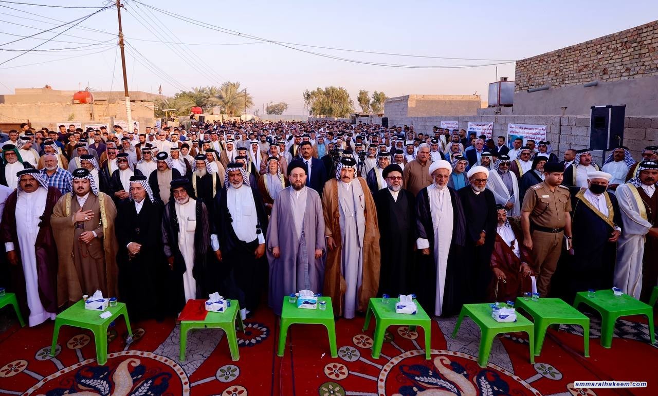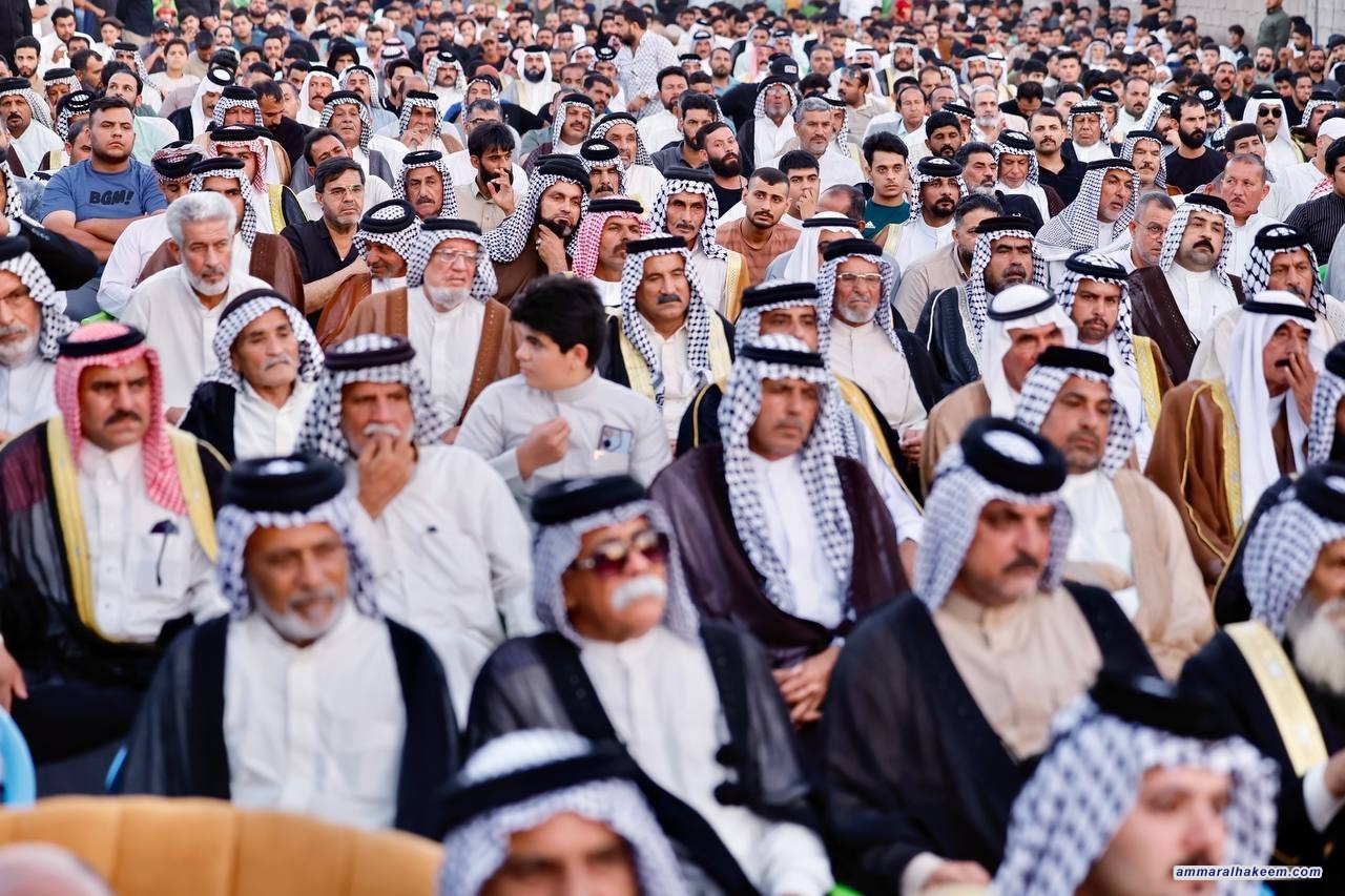 سماحته اشار أيضا إلى معاناة العراق من التحديات الاجتماعية ومن مشاريع عملت على ضرب النسيج الاجتماعي، واستطاع العراق تجاوز كل هذه التحديات كما تجاوز التحديات السياسية وغادر مرحلة التكاسر السياسي وصار الانفتاح الإقليمي والدولي والقبول بالواقع العراقي هو السمة السائدة موضحا أن الهدوء السياسي والوئام المجتمعي والاستقرار الأمني كلها مقومات لتقديم الخدمات وتحقيق الإعمار والتنمية، وأكد  أهمية الاهتمام بمناطق أطراف بغداد وبناها التحتية وحسم عائدية منطقة الأوسمة لبغداد، كما دعا لبناء المدارس وإزالة المعوقات.