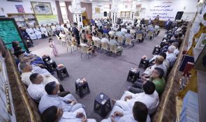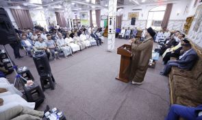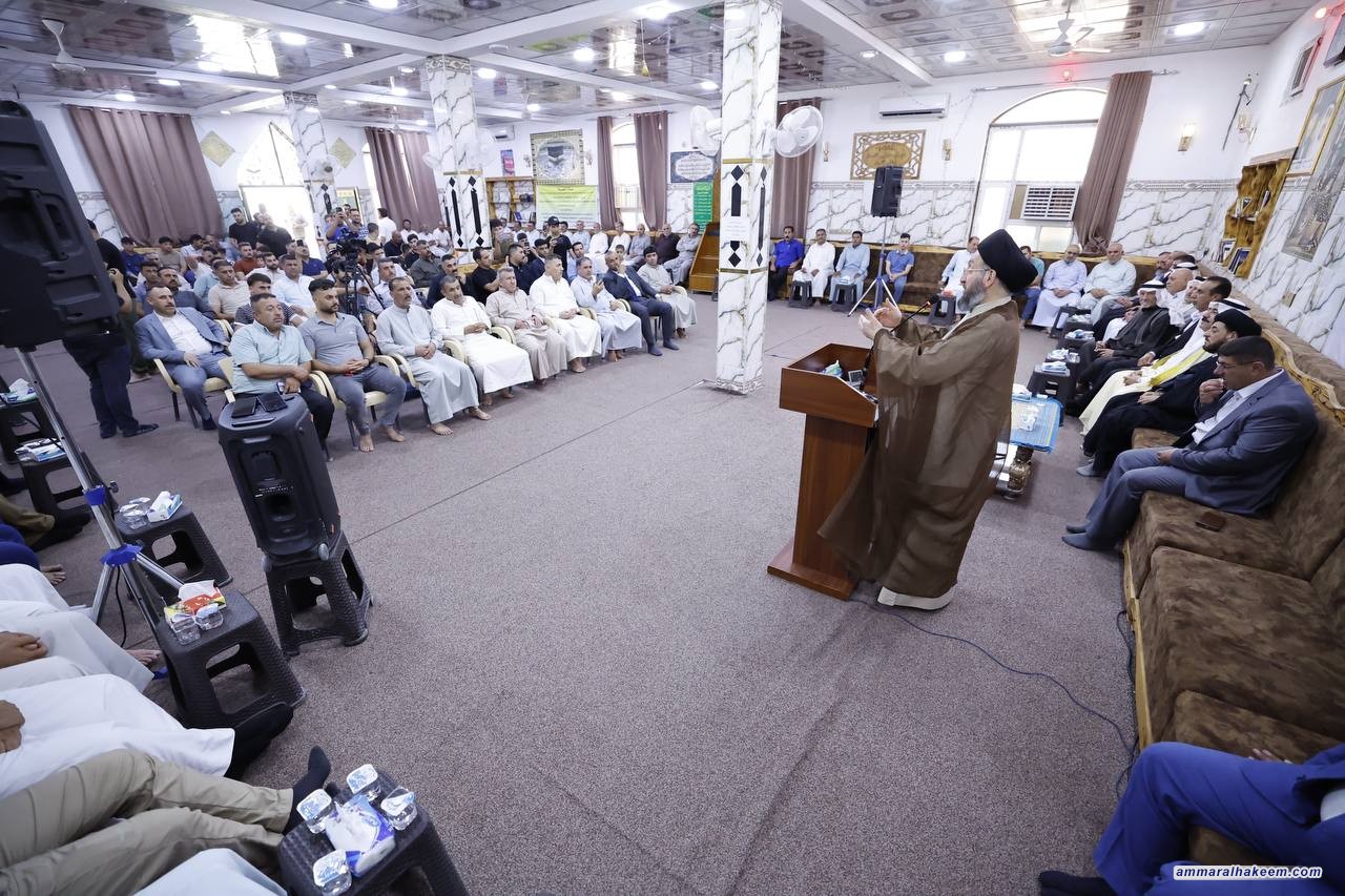 سماحته شدد على تكاملية الركائز التي حفظت المجتمع العراقي المتمثلة بالمرجعية الدينية والعشائر العراقية والشعائر الحسينية مبينا أن العراق اليوم أقوى من أي وقت مضى وسيكون محور نهاية التاريخ كما كان في أوله.