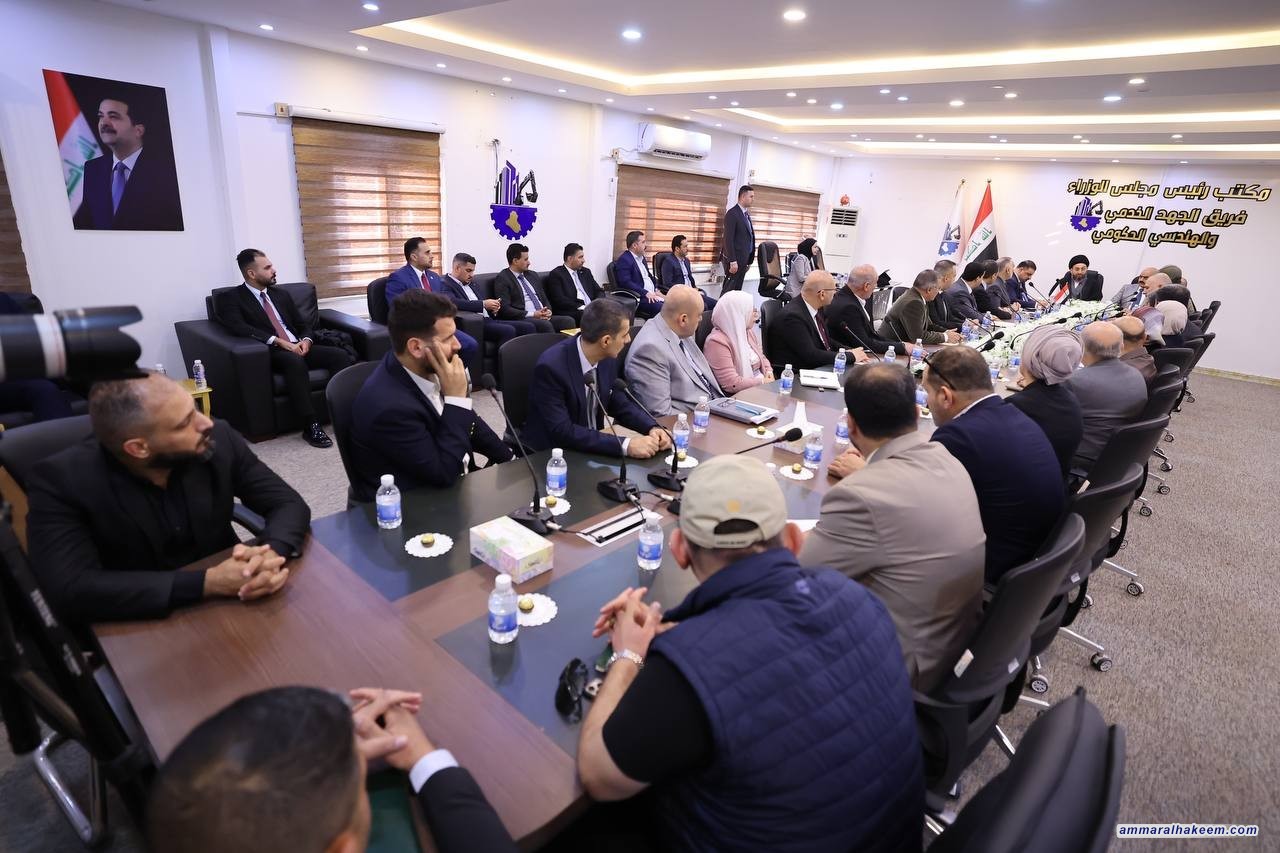 خلال زيارته لمقرهم ، السيد الحكيم يشيد بدور الجهد الخدمي ويعد الخدمات أولوية قصوى في هذه المرحلة