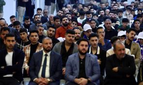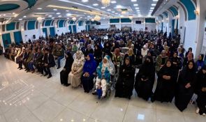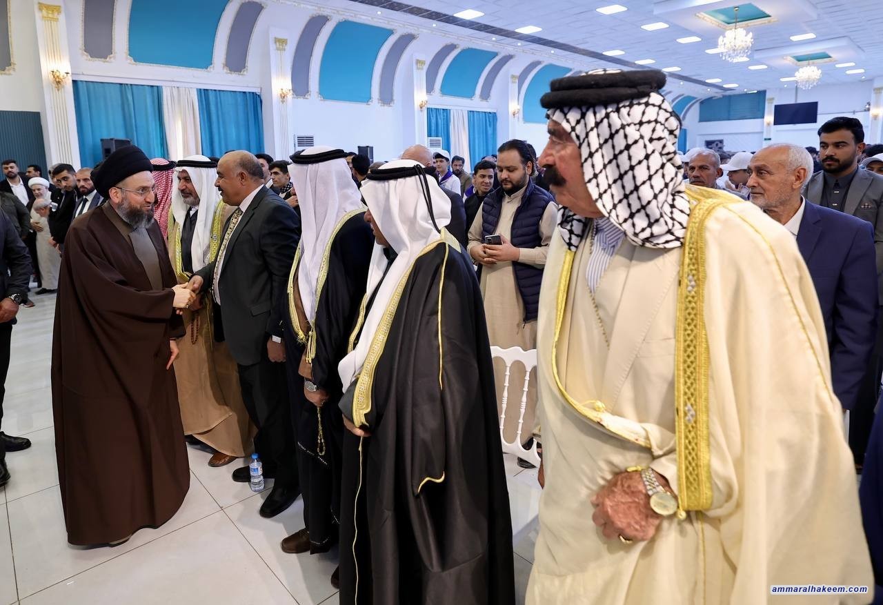 سماحته جدد دعوته لمشاركة الجميع في كركوك فلا سبيل لكركوك إلا بالاعتدال والوسطية واحتواء واحتضان الجميع مشددا على التواصل مع الجمهور وشحذ الهمم، وأهمية الشباب ورعايتهم وتمكينهم ودعوتهم لمشروع الحكمة الوطني.