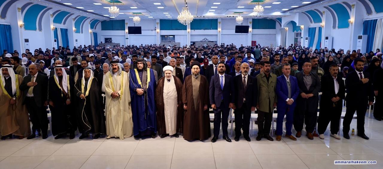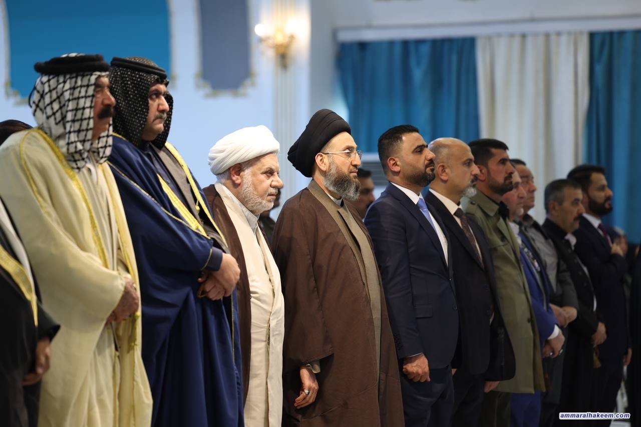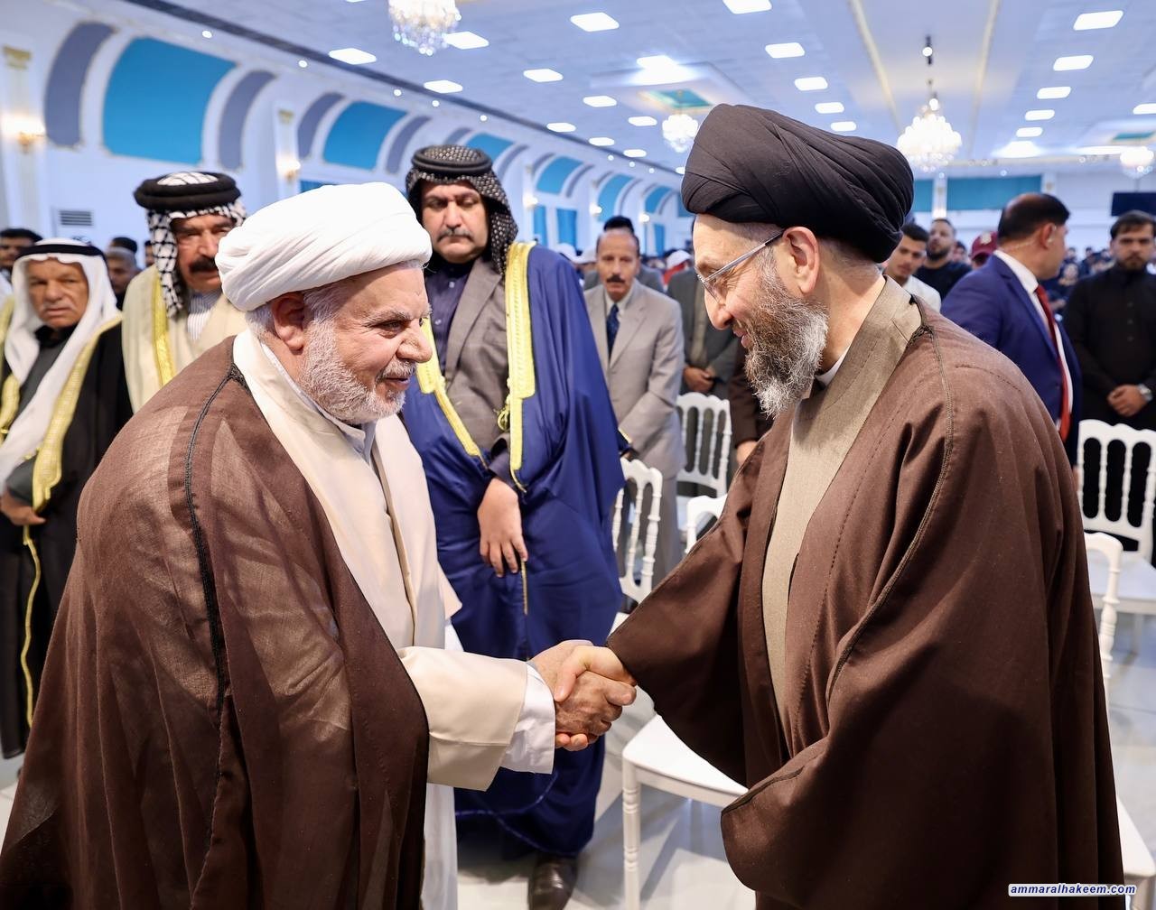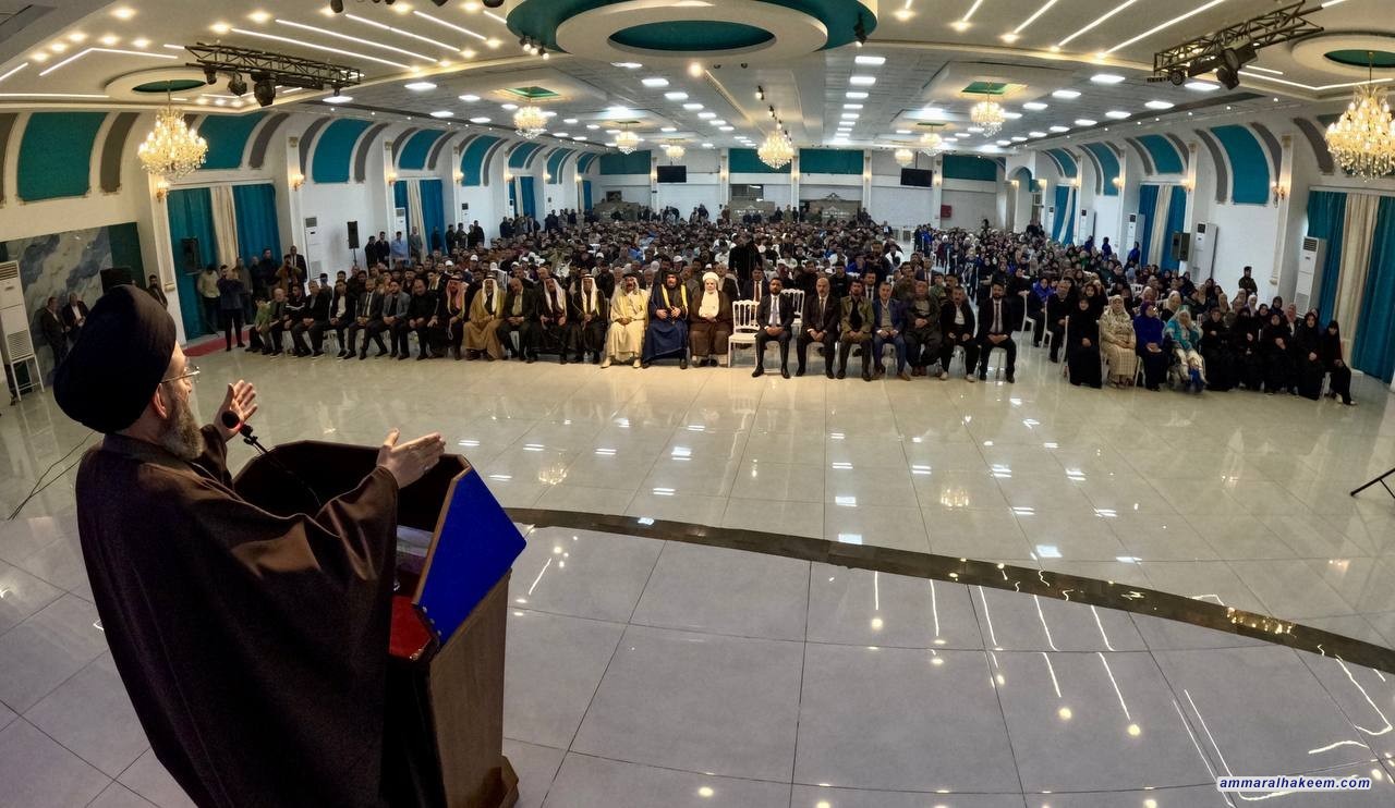 وقال سماحته إن العراق بلد ممسوك، وذكّرنا برأي شهيد المحراب (قدس سره) بأن المجتمع العراقي ممسوك بوجود المرجعية الدينية والعشائر العراقية والشعائر الحسينية، حيث تمثل هذه الثلاثية ( القيادة وذراع القيادة والموضوع الذي يلهب الحماسة) داعيا لاعتماد منهج الاعتدال والوسطية كحل لأزمات العراق وسبيل لتحقيق الاستقرار، ودعا للتعرف على مشروع الحكمة والتعريف والتمسك به وبرموزه وشهدائه وبالمحطات الفاصلة من تاريخ العراق والتي حضر بها مشروع الحكمة بشكل فاعل وكبير .
