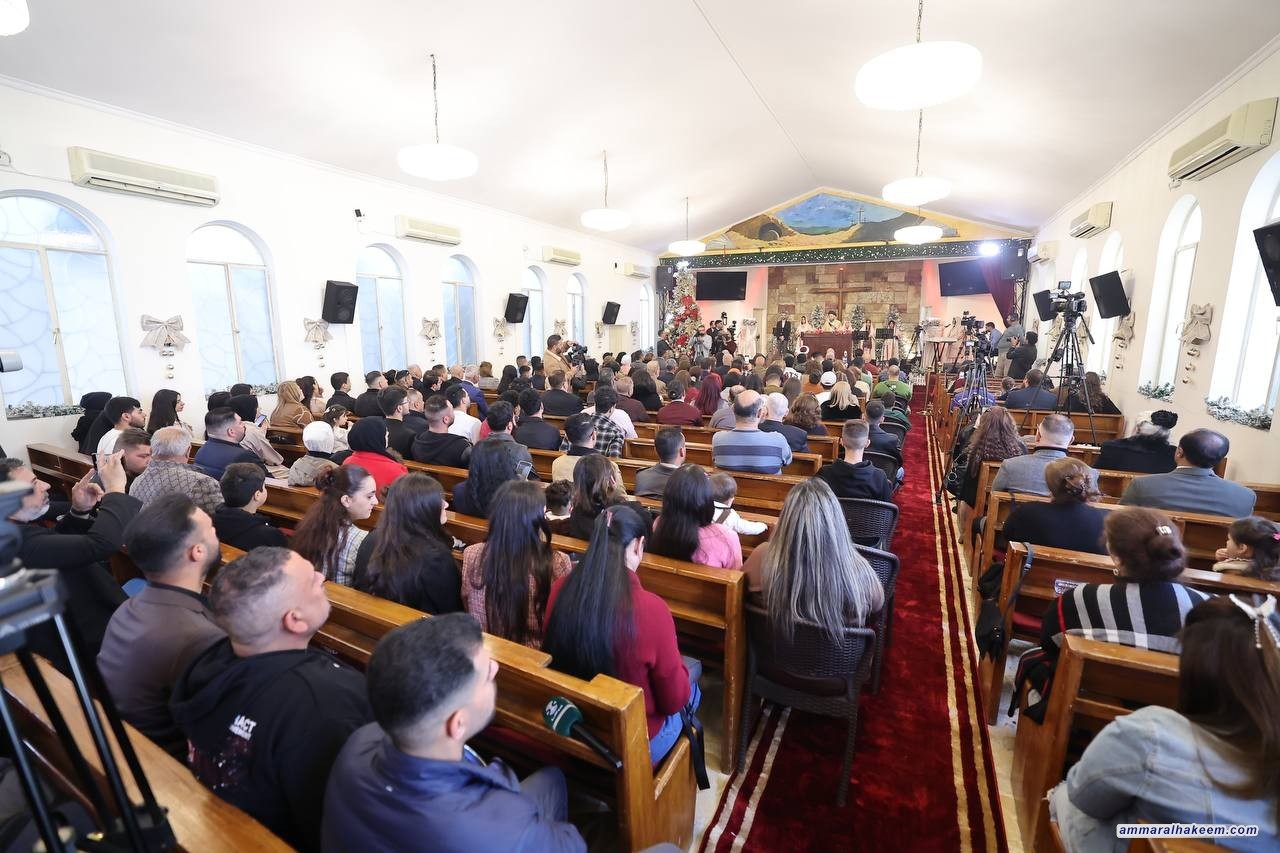 وأضاف السيد الحكيم: "العراق يعيش اليوم حالة تنموية كبيرة، ويتطلب ذلك مراكمة الإيجابيات لبناء عراق مستقل ومستقر ومزدهر، وهو ما يمكن تحقيقه من خلال احترام الخصوصيات تحت خيمة العراق". واعتبر أن "حضورنا في الكنائس اليوم هو تعبير عن الروابط الإنسانية بين أبناء الشعب العراقي، كما أن المسيحيين في العراق هم مكون لا يقاس بعدده، بل بدوره النوعي وإسهاماته في إثراء المجتمع".