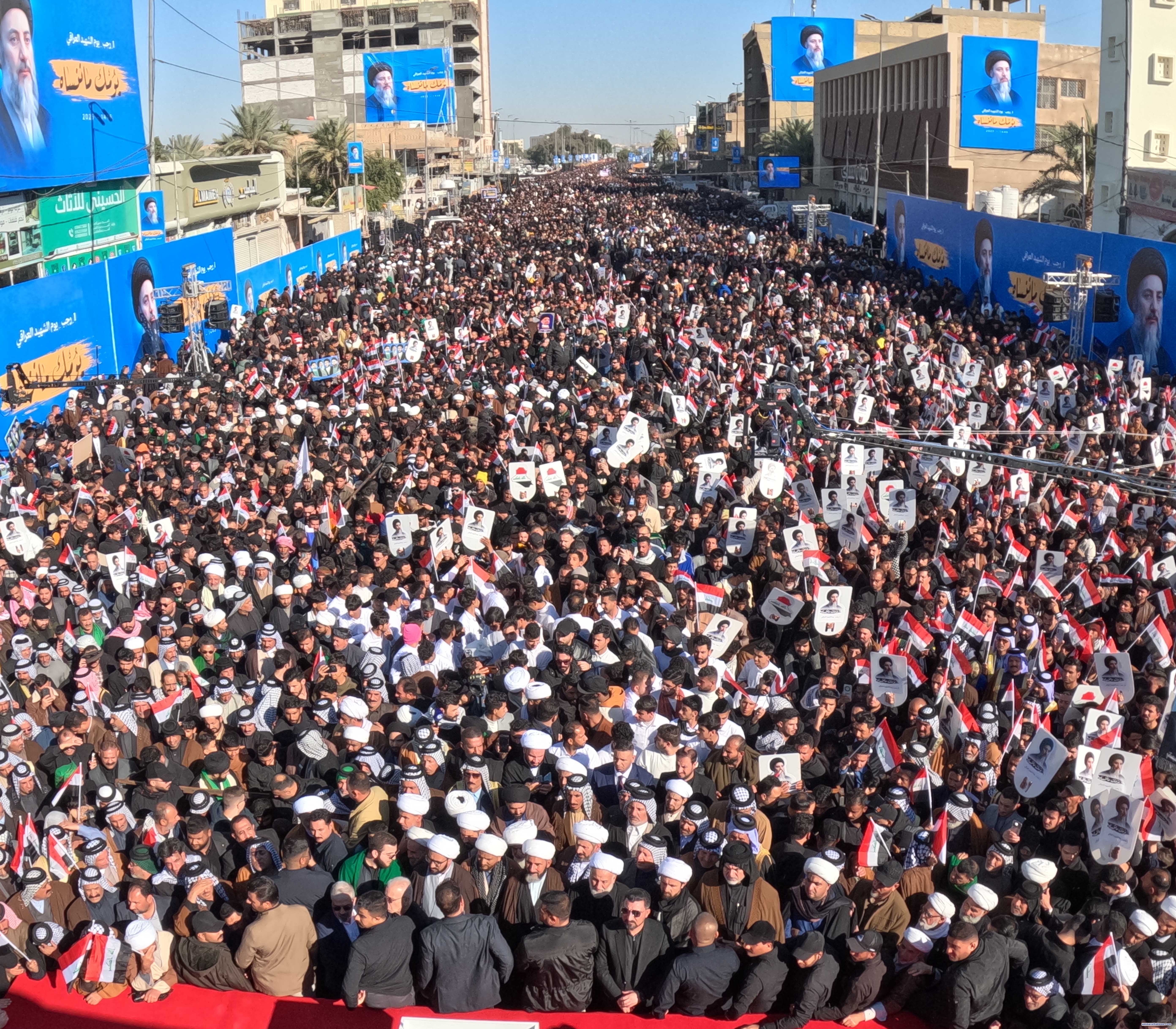 تحية اجلال واكبار لشعبنا العراقي الأبي ومراجعنا العظام ولاسيما المرجع الأعلى الإمام السيستاني (دام ظله الوارف) والمجد لشهدائنا الأبرار ولاسيما قادة الانتصار وشهداء القدس والشهيدين الصدرين وشهيد المحراب وعزيز العراق.