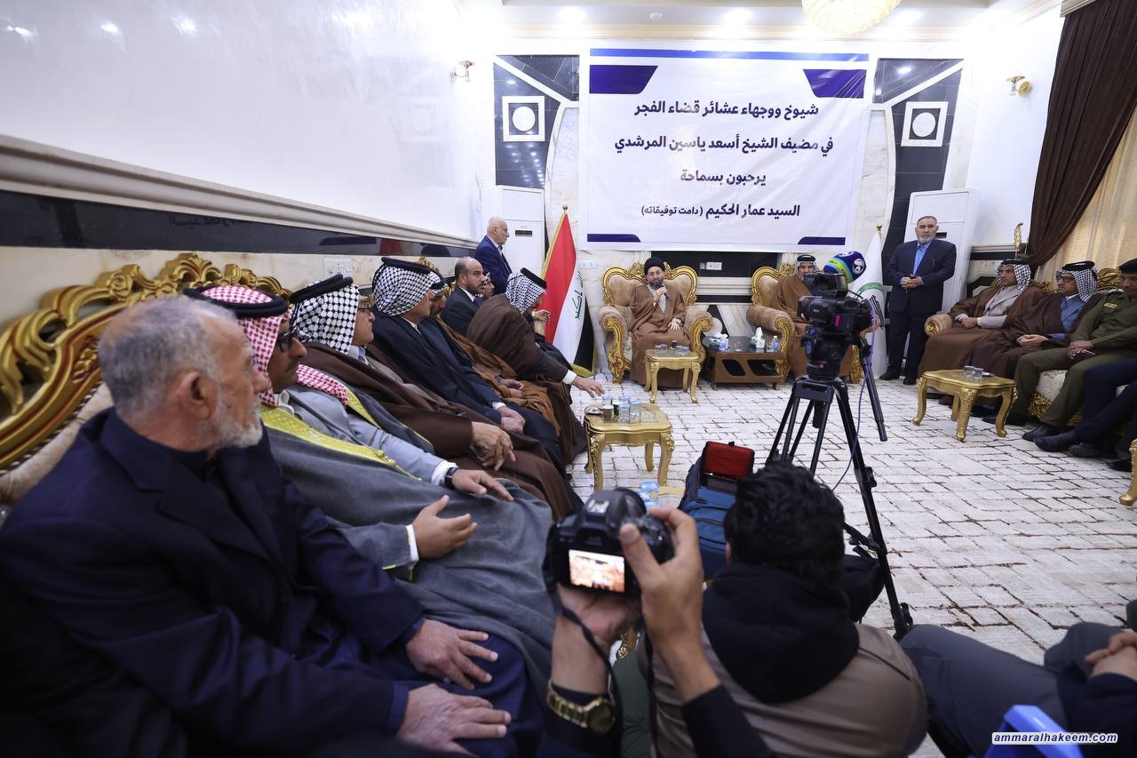 في مستهل جولته من اليوم الثاني بمحافظة ذي قار، زار السيد عمار الحكيم، رئيس تحالف قوى الدولة الوطنية، قضاء الفجر، حيث كان في استقباله الشيخ أسعد ياسين المرشدي وجمع من شيوخ ووجهاء القضاء. وشهد اللقاء استرجاع ذكريات النضال المشترك في الدفاع عن العراق والإسلام، مؤكدًا على الروابط المتينة التي تجمع أبناء الشعب العراقي في مواجهة التحديات.