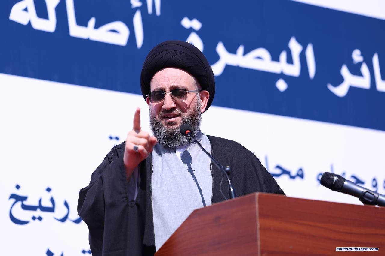 وأكد السيد الحكيم أن علاقة آل الحكيم بأهل البصرة علاقة ضاربة في الجذور، مشيرًا إلى أن شهيد المحراب جعل من البصرة محطته الأولى عند عودته إلى العراق، تكريمًا لها ولتضحيات أبنائها. مشيدا بدور المحافظة في مواجهة الدكتاتورية، والمساهمة في بناء الدولة، وصياغة الدستور، ومكافحة الإرهاب، فضلًا عن دورها الاقتصادي المحوري، معتبرًا أن ما يُقدم للبصرة لا يزال دون مستوى عطائها وتضحياتها، حيث أشار إلى التقصير في دفع مستحقات البترودولار وضرورة معالجته بشكل عاجل.