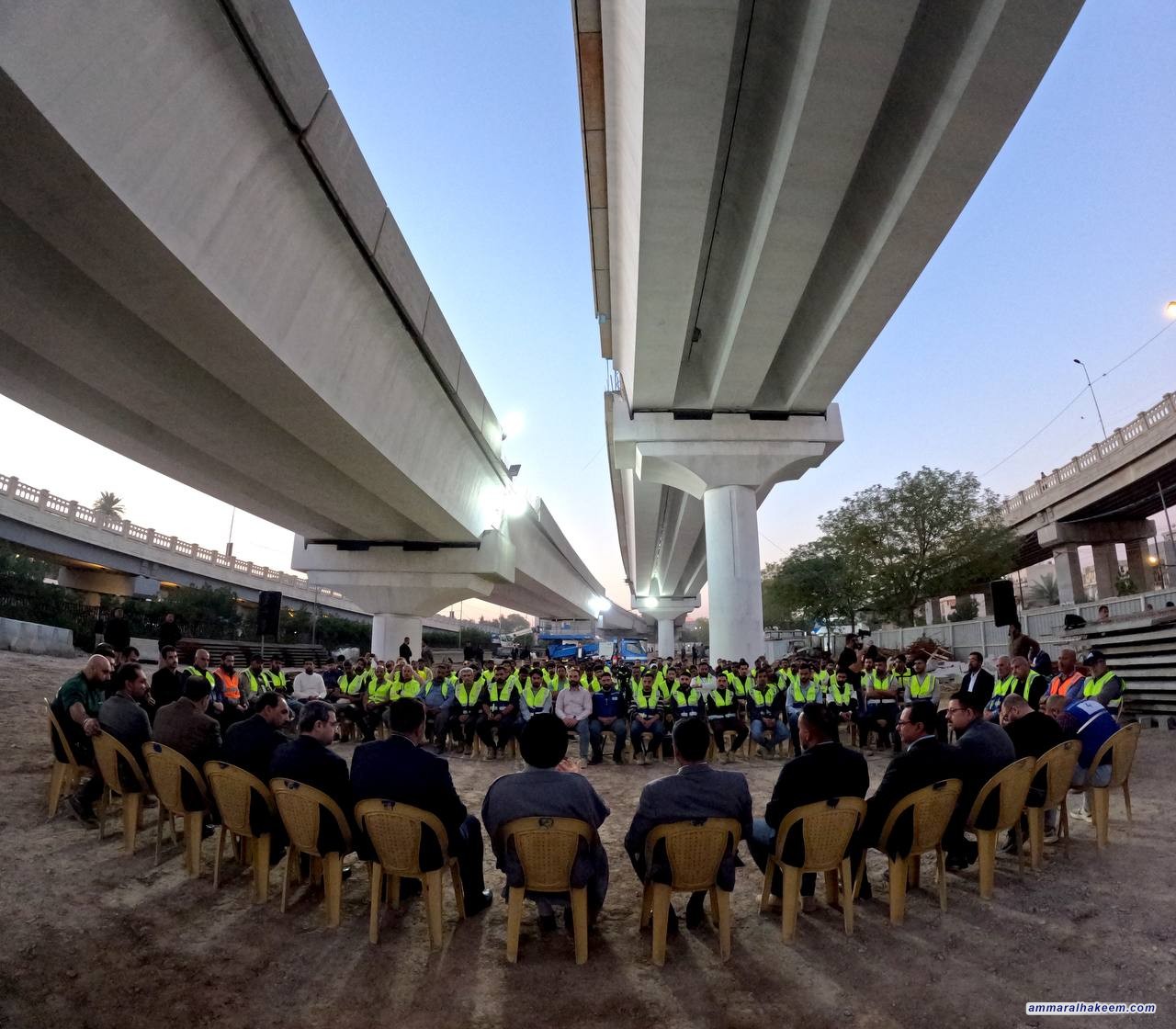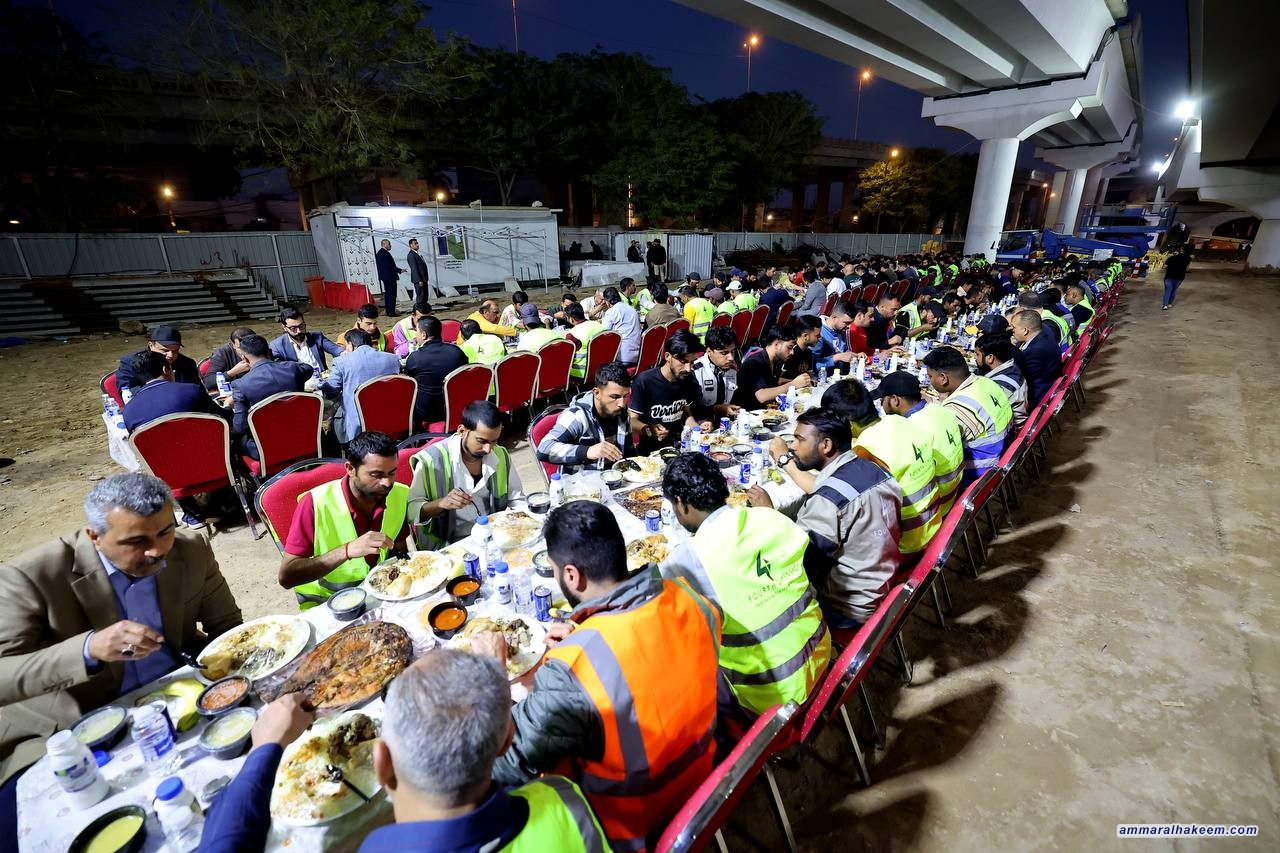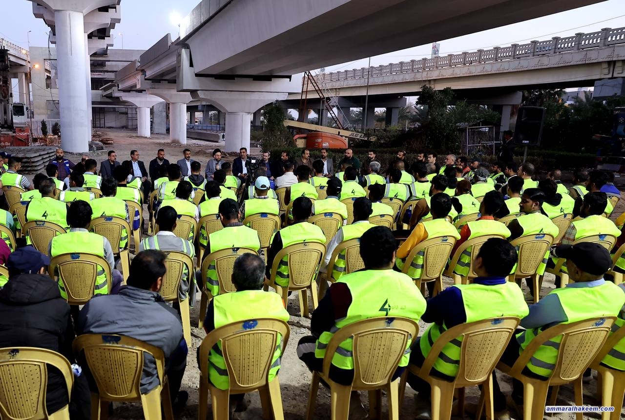 السيد الحكيم يلتقي المهندسين والعمال في مواقع العمل في بغداد: دعوة للاستفادة من شهر رمضان الكريم وفخر بالجهد الوطني