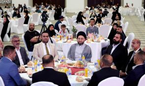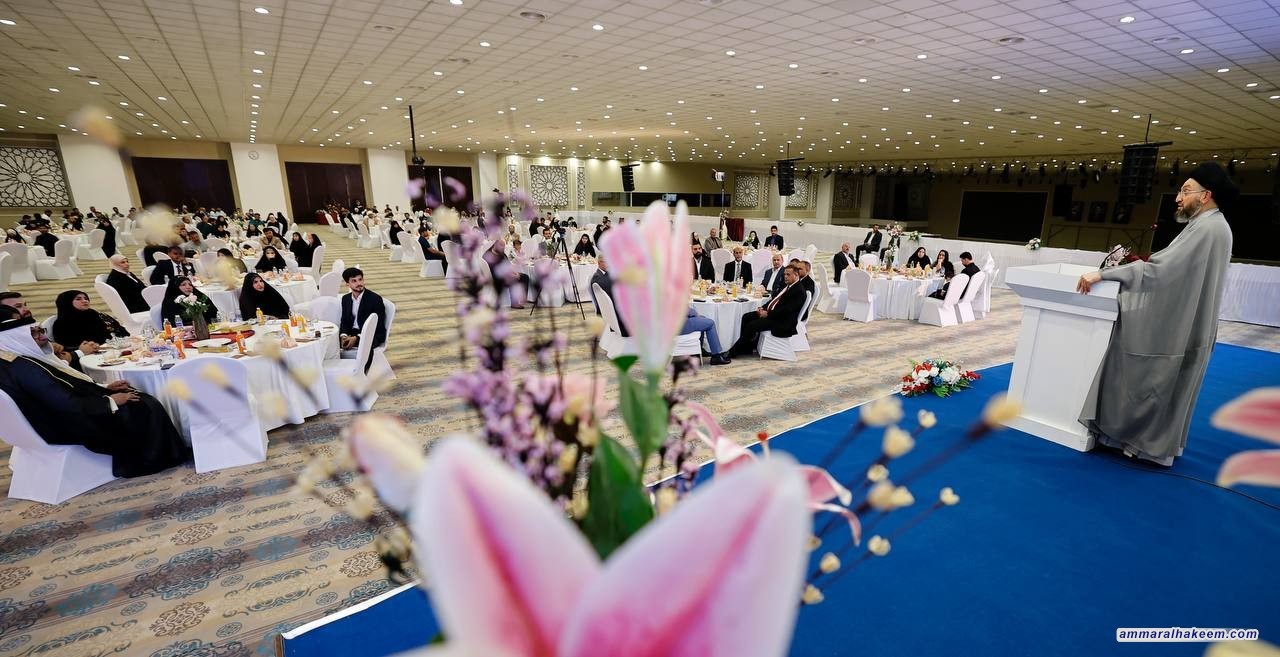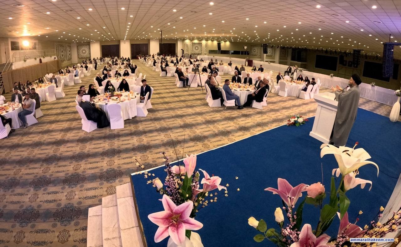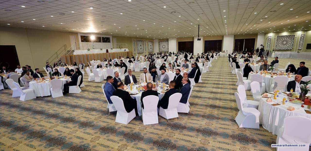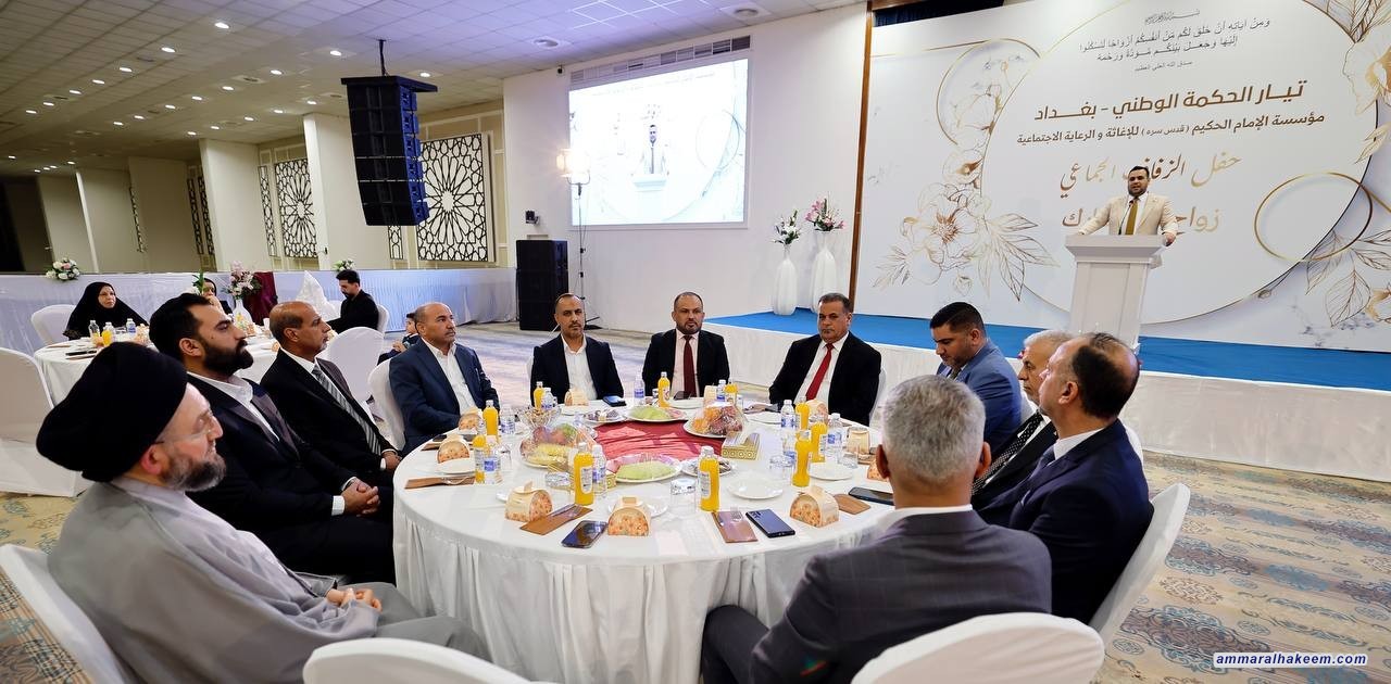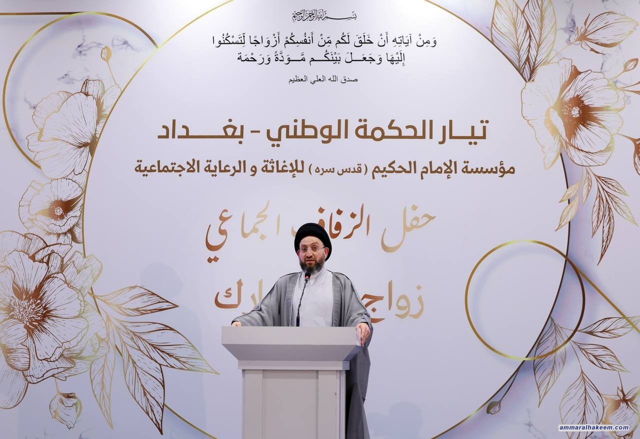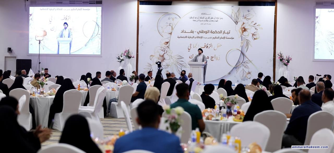 السيد الحكيم يبارك للعرسان في حفل الزفاف الجماعي ويشدد على أهمية التماسك الأسري وبناء المجتمع القوي