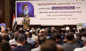 واختتم السيد الحكيم كلمته بالتأكيد على التزام شهيد المحراب بالقضية الفلسطينية، التي ظل يعتبرها قضية المسلمين المركزية، رغم ما كان يمر به العراق من ظروف قاسية آنذاك، ليجسد بذلك روح القيادة المتجردة والملتزمة بقضايا الأمة.