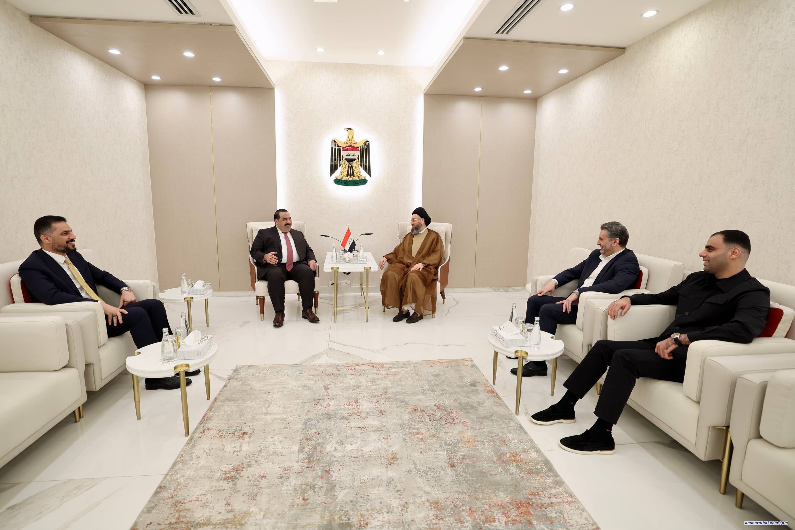 السيد الحكيم يلتقي رئيس تحالف العزم ويؤكد على التمسك بالوحدة الوطنية وأهمية المشاركة الواعية في الانتخابات