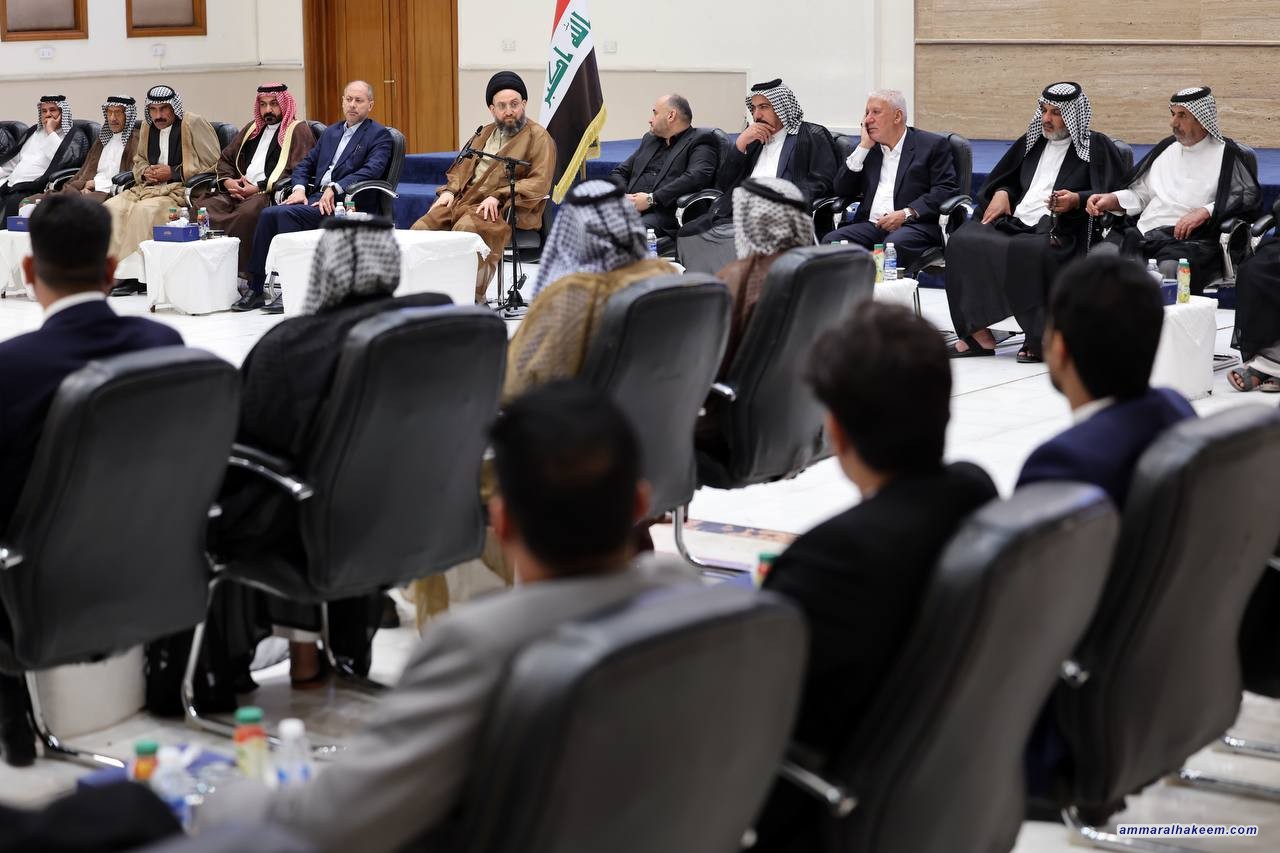 في لقائه شيوخ ووجهاء المثنى.. السيد الحكيم يدعو إلى مشاركة انتخابية مسؤولة ويشدد على منهج الوسطية