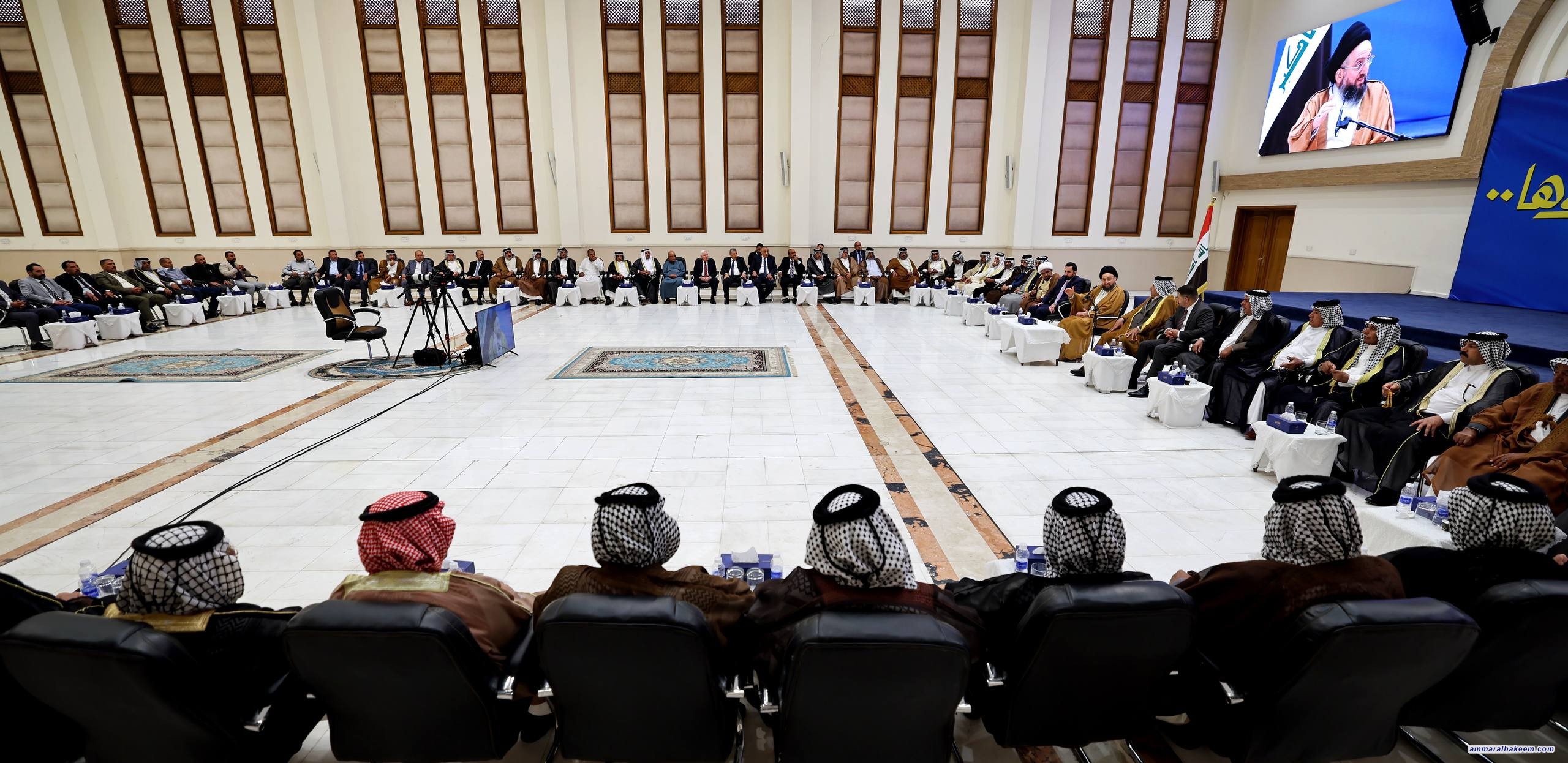 السيد الحكيم خلال لقائه وجهاء المدائن: المشاركة الواسعة في الانتخابات ضمانٌ للاستقرار الوطني