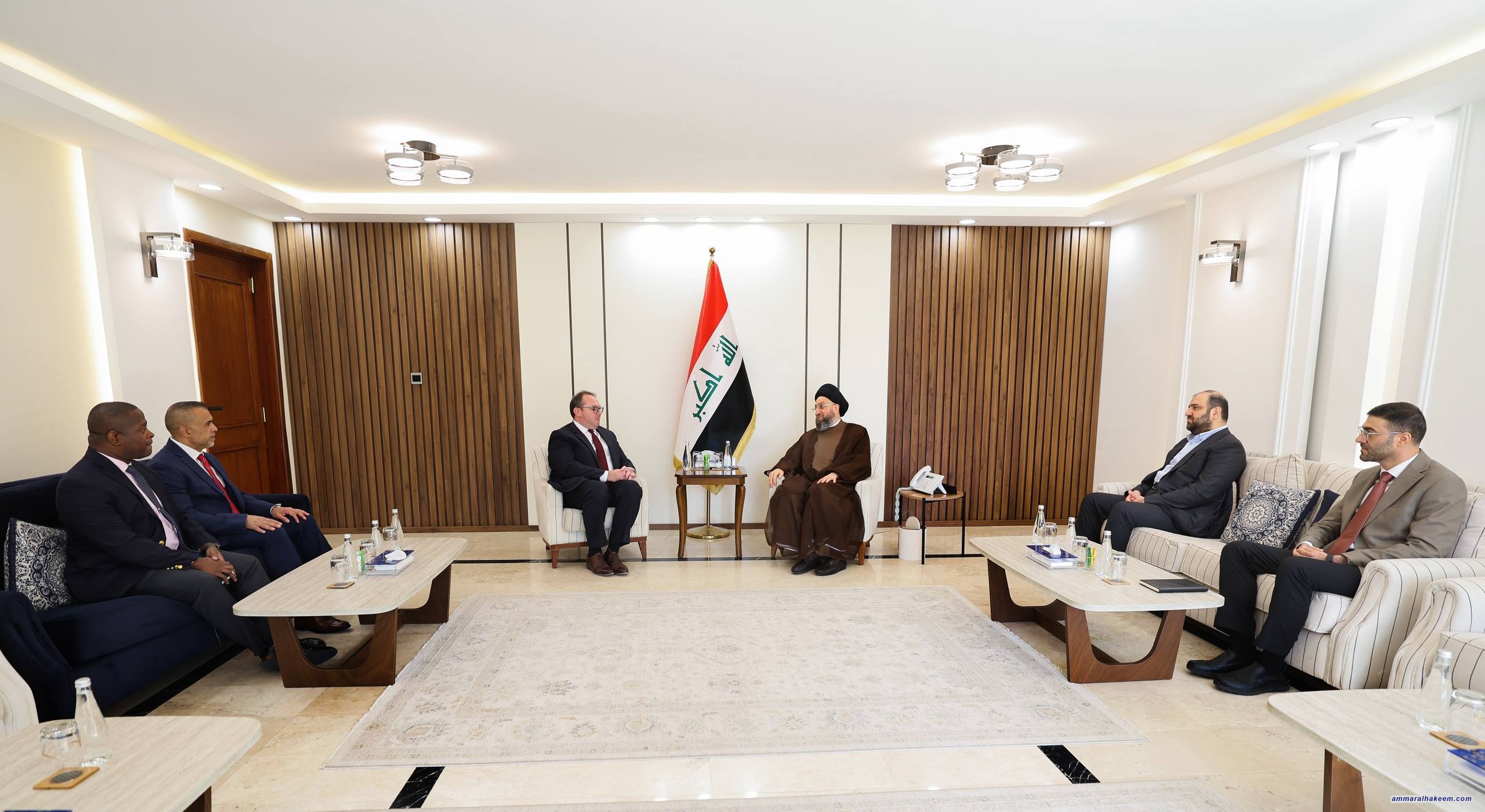 التقى سماحة السيد الحكيم، رئيس تحالف قوى الدولة الوطنية، اليوم الخميس، سعادة السيّد (جوشوا هاريس) القائم بالأعمال في بعثة الولايات المتحدة الأمريكية لدى العراق، حيث جرى تبادل وجهات النظر حول العلاقات الثنائية بين العراق وواشنطن، وسبل تعزيزها بما يخدم مصالح البلدين.