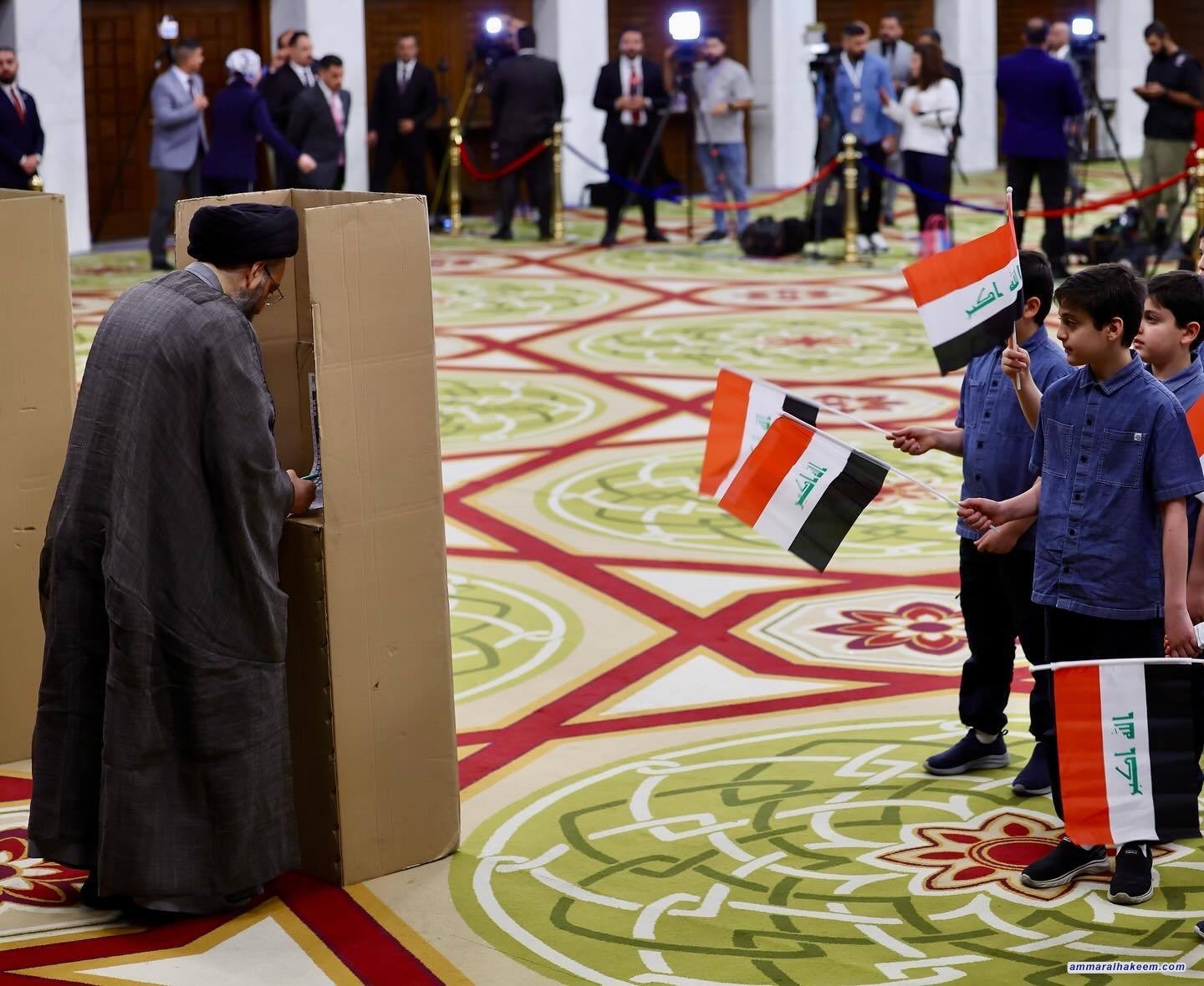 السيد الحكيم يدعو العراقيين لمشاركة واسعة ويؤكد: أصوات الشعب أمانة تاريخية