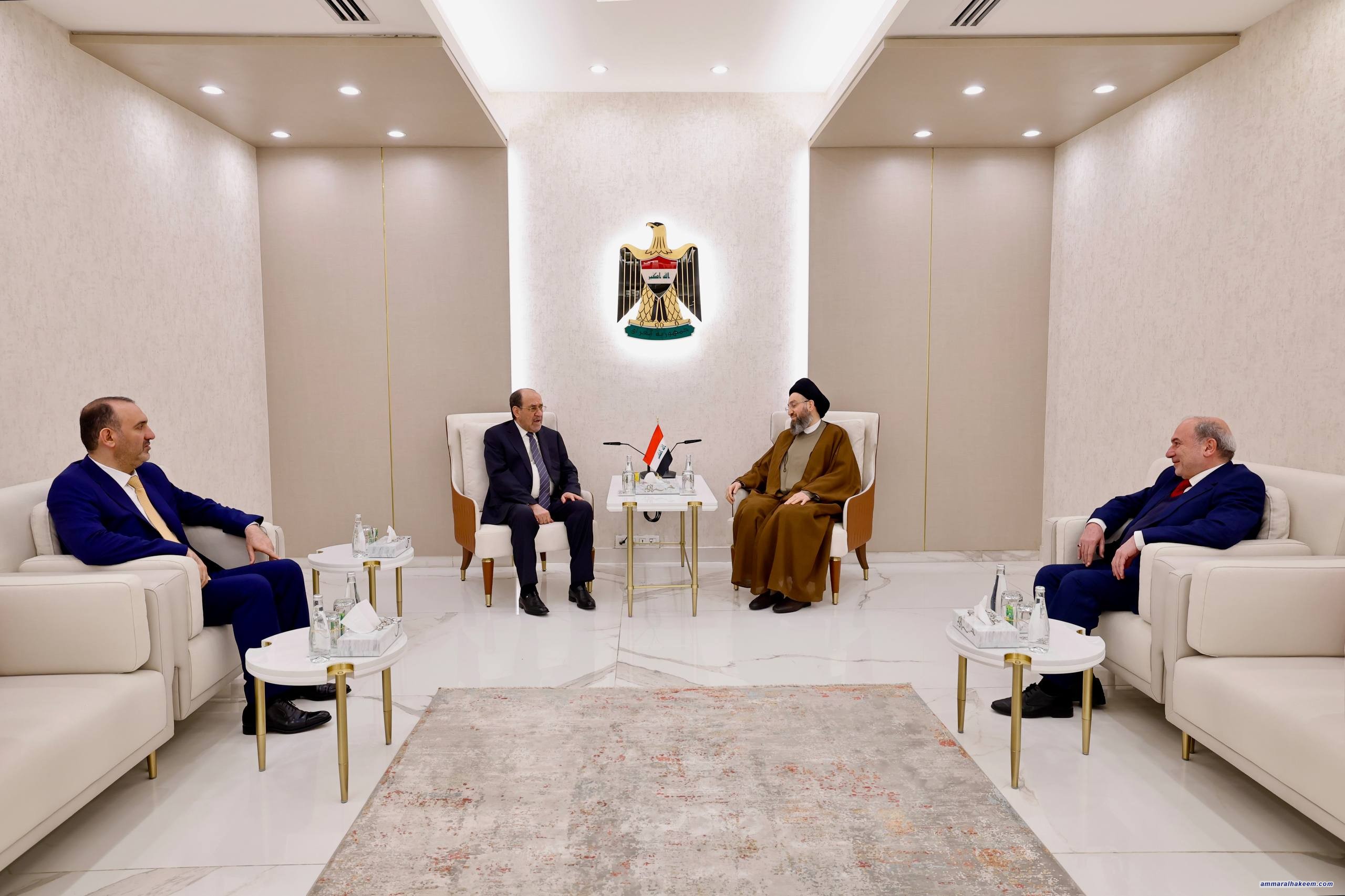 السيد الحكيم يستقبل دولة الأستاذ نوري المالكي ويؤكدان الالتزام بالتوقيتات الدستورية ووحدة الإطار التنسيقي