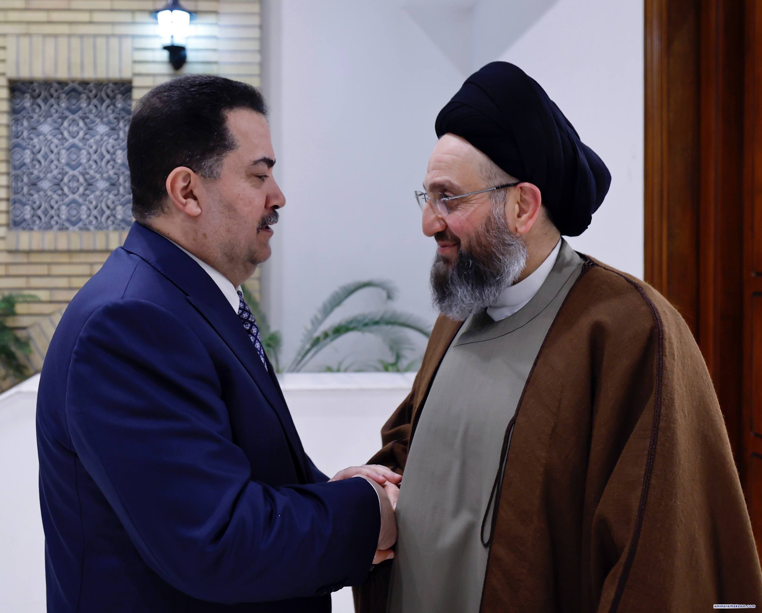 السيد الحكيم يستقبل رئيس الوزراء محمد شياع السوداني ويؤكد وحدة الإطار التنسيقي والالتزام بالمدد الدستورية