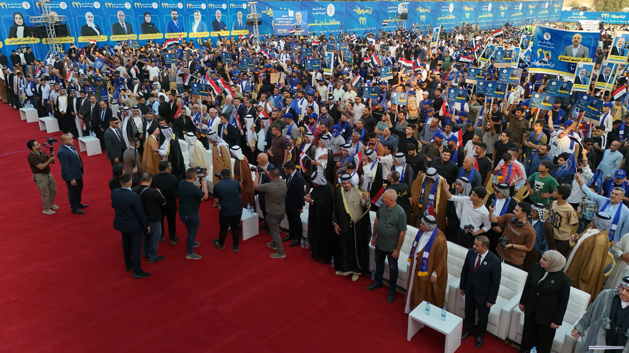 في التجمّع الانتخابي الكبير لجماهير تحالف قوى الدولة الوطنية في محافظة ديالى، محافظةِ التنوّع، وعاصمة البرتقال، ومدينة التضحية والفداء والشهادة والوطنية العراقية، استذكر سماحةُ السيد الحكيم، رئيسُ تحالف قوى الدولة الوطنية، تلك التضحيات التي قدّمتها ديالى والوطن، وتلك الظروف الصعبة التي عاشتها المحافظة، مبيِّنًا أن ديالى اليوم تعيش حالةَ أمنٍ وأمانٍ بفضل الله، وهديِ المرجعية الدينية العليا، ودماءِ وتضحياتِ وعطاءِ أبنائها الأوفياء، وتضحياتِ الأجهزة الأمنية والحشد الشعبي.