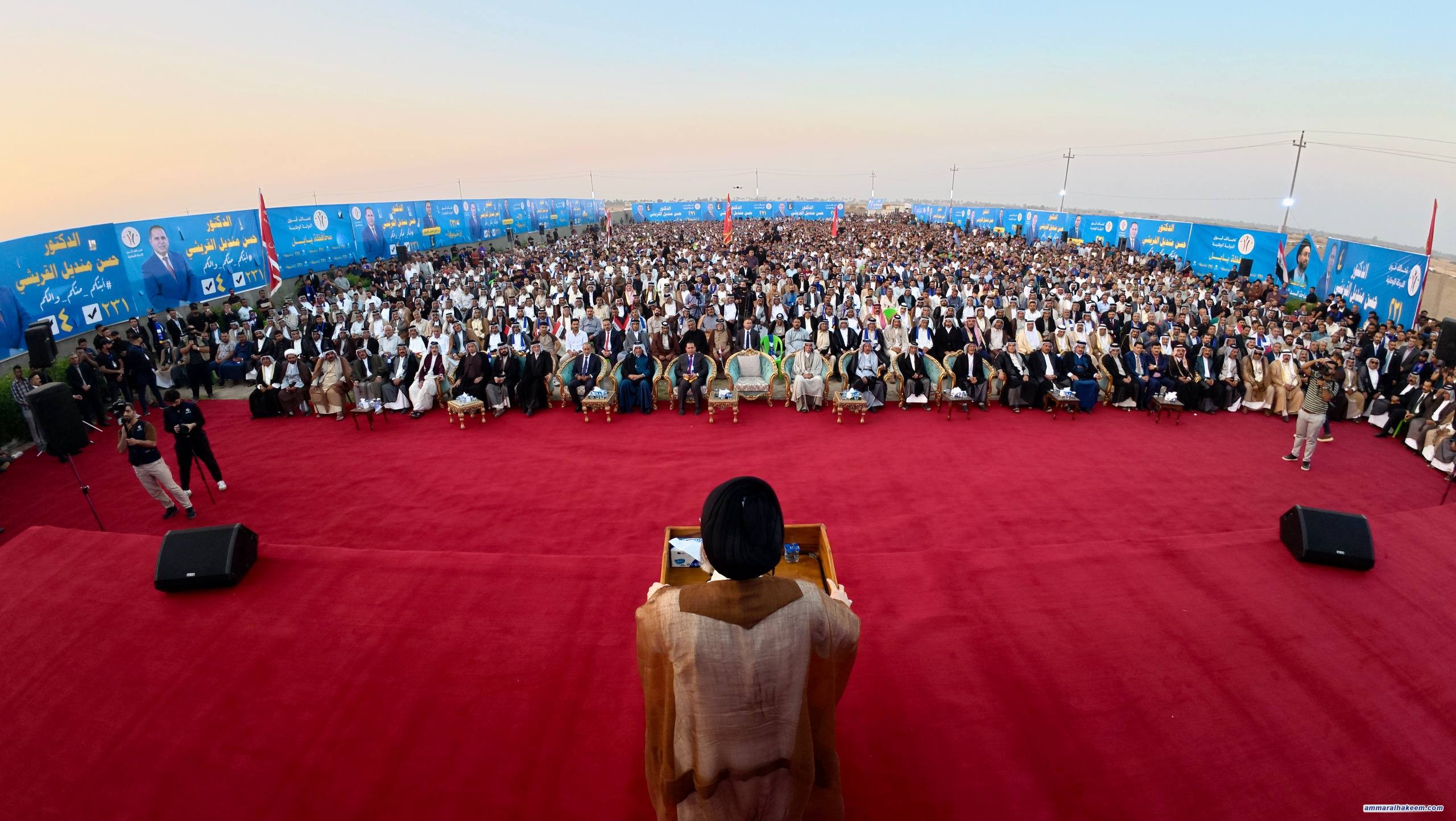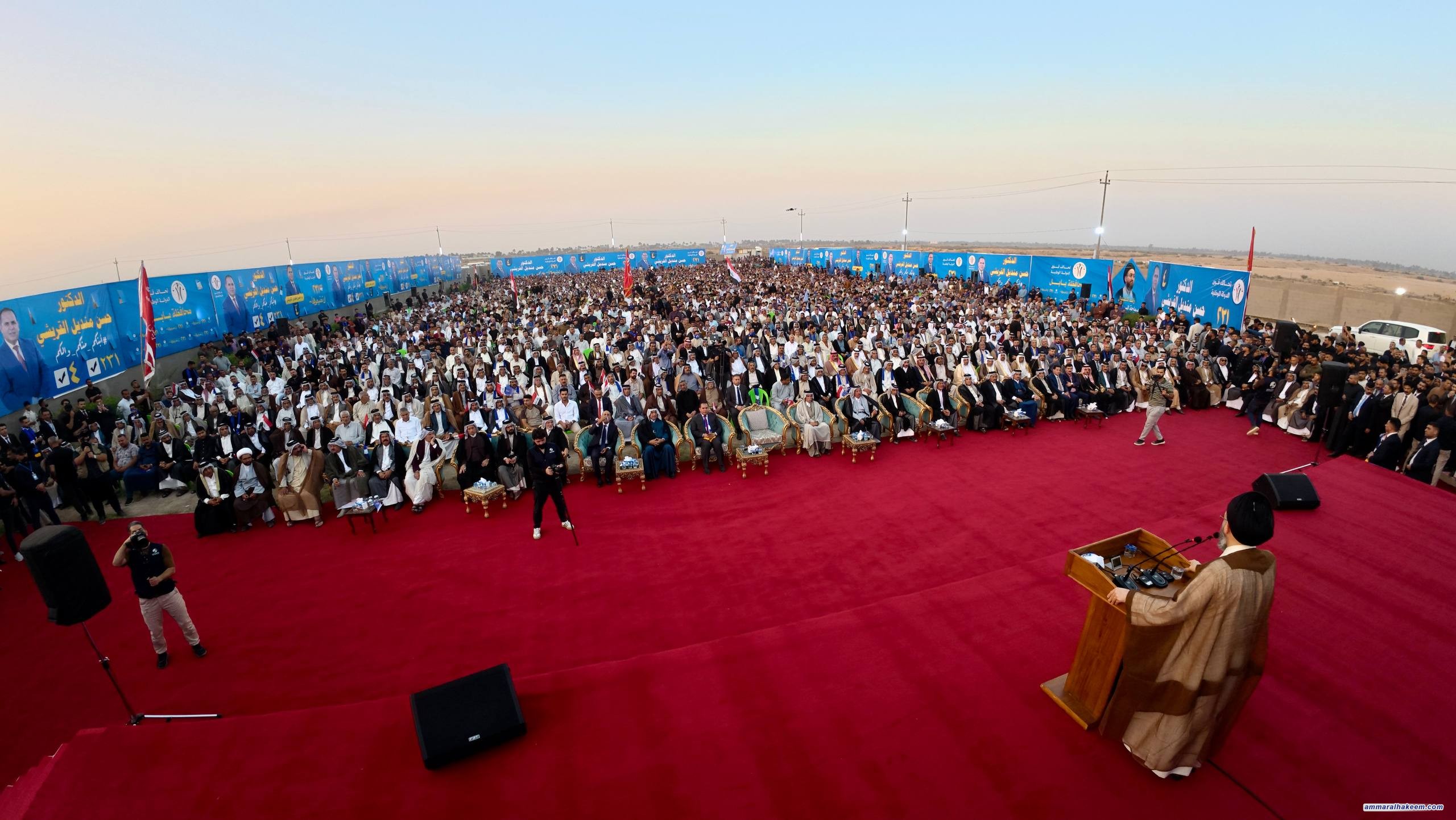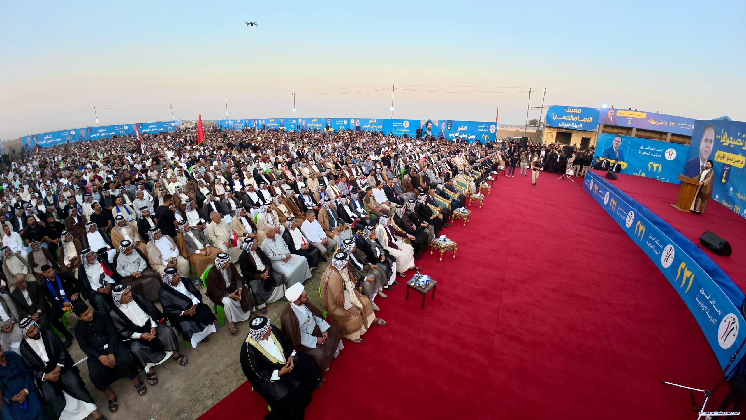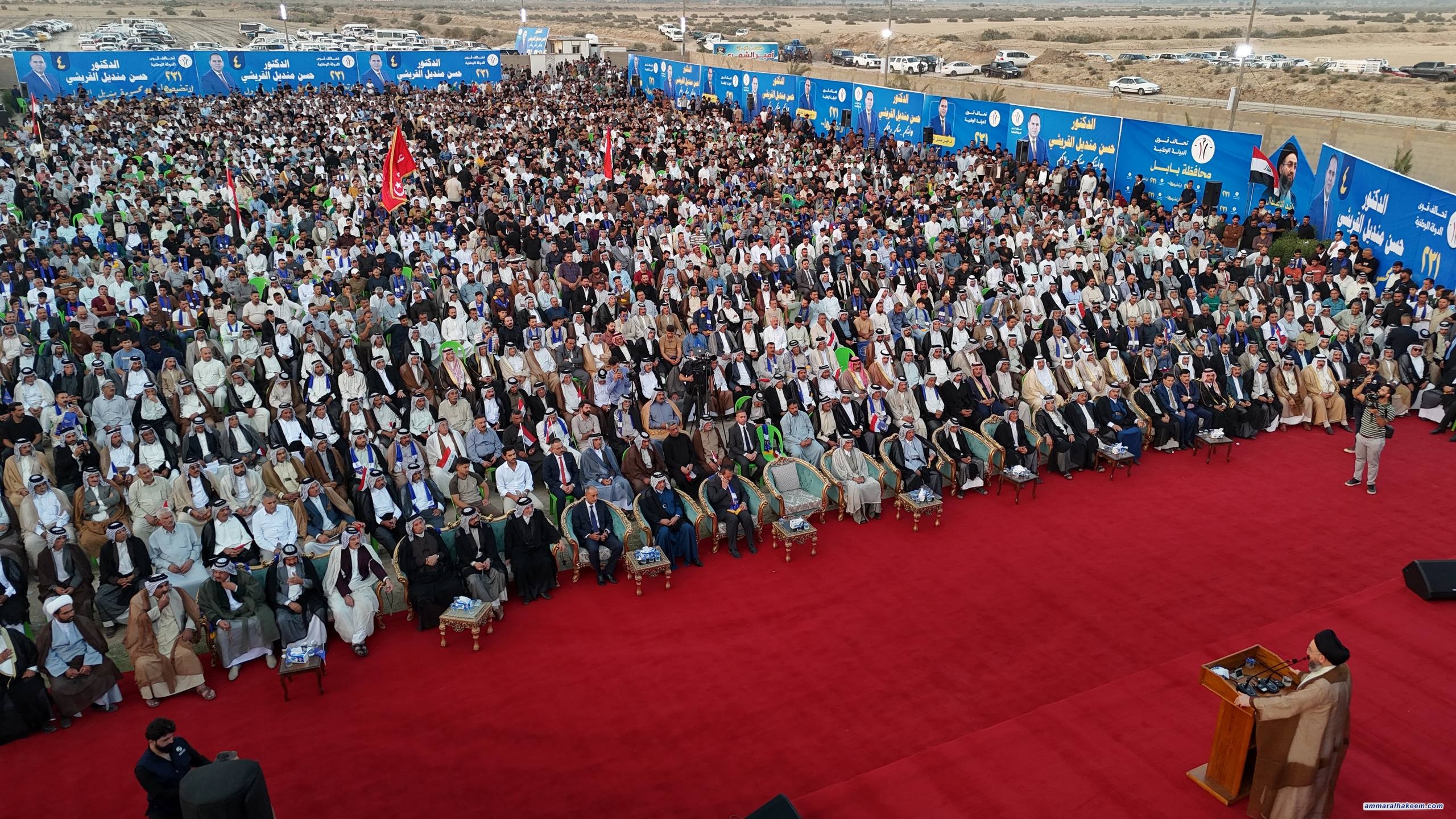 في مضارب قبيلة قريش في محافظة بابل، التقى سماحةُ السيد الحكيم، رئيسُ تحالف قوى الدولة الوطنية، مساء اليوم ٢٥ تشرين الأول ٢٠٢٥، جمعًا كبيرًا من شيوخ ووجهاء قبيلة قريش وعشائر بابل.